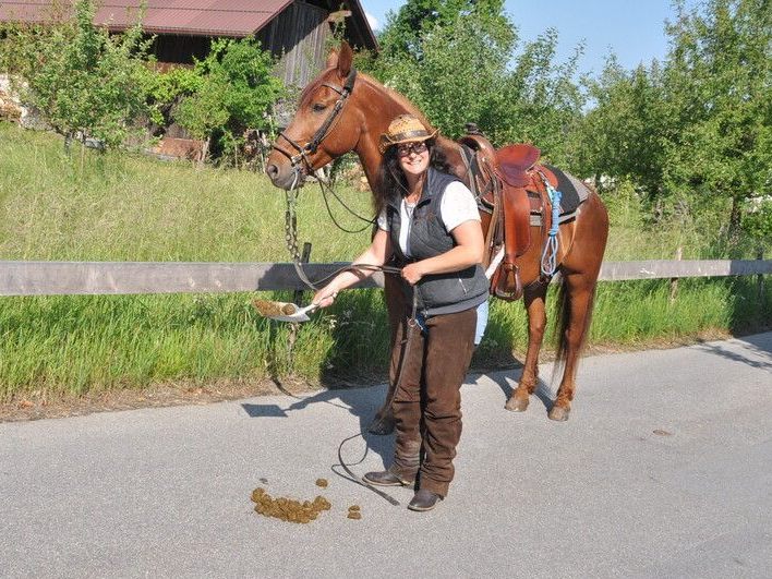 28.06.2023 Heidi Emmert möchte ein Vorbild sein und reitet nur mit Schaufel und Säckchen im Gepäck.