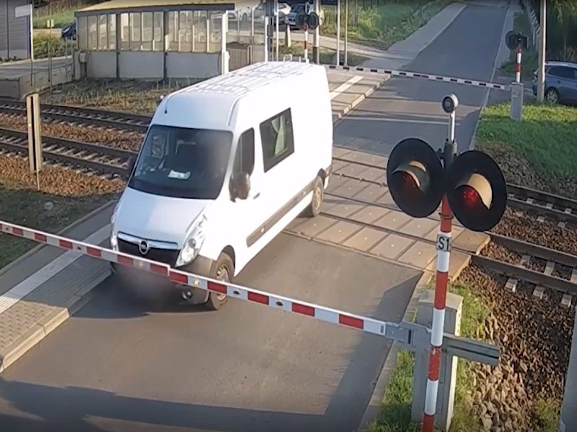 Lieferwagen von Zug erfasst: Polizei veröffentlicht dramatisches Video