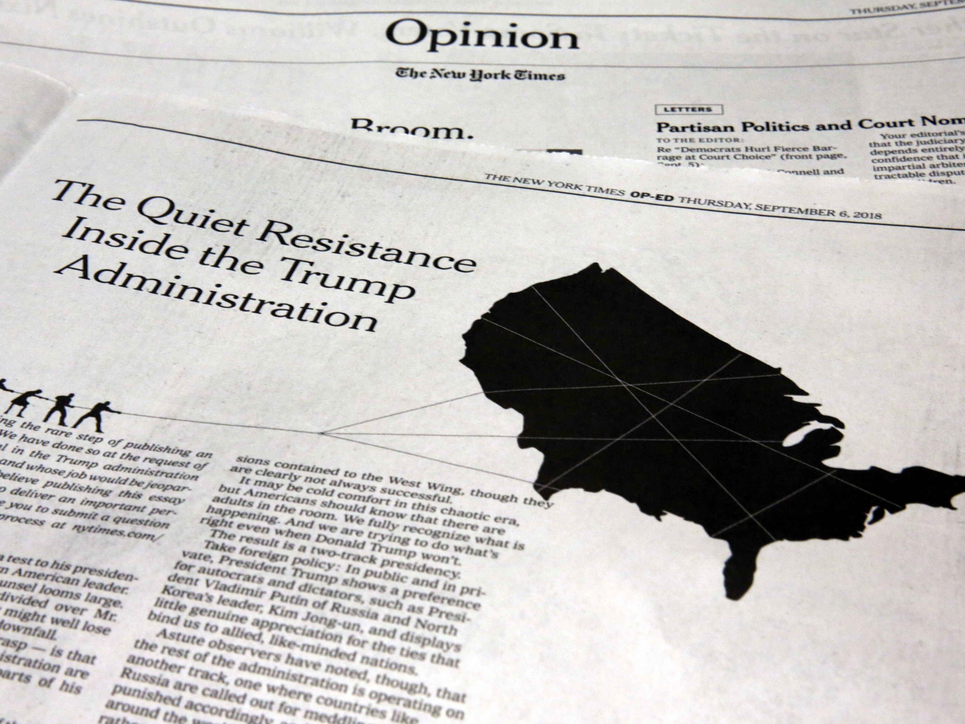 6.09.2018 Innerhalb der US-Regierung gibt es nach einem Bericht eines anonymen hochrangigen Regierungsmitarbeiters in der "New York Times" ("NYT") aktiven Widerstand gegen Präsident Donald Trump.