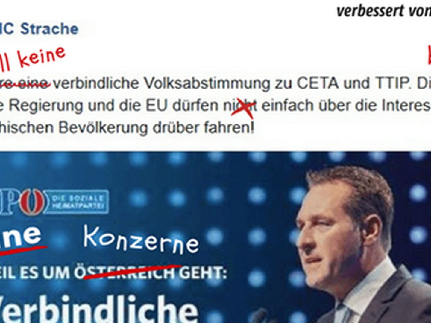 17.05.2018 Mit einem "korrigierten" Facebook-Posting von HC Strache zieht die SPÖ die FPÖ durch den Kakao.