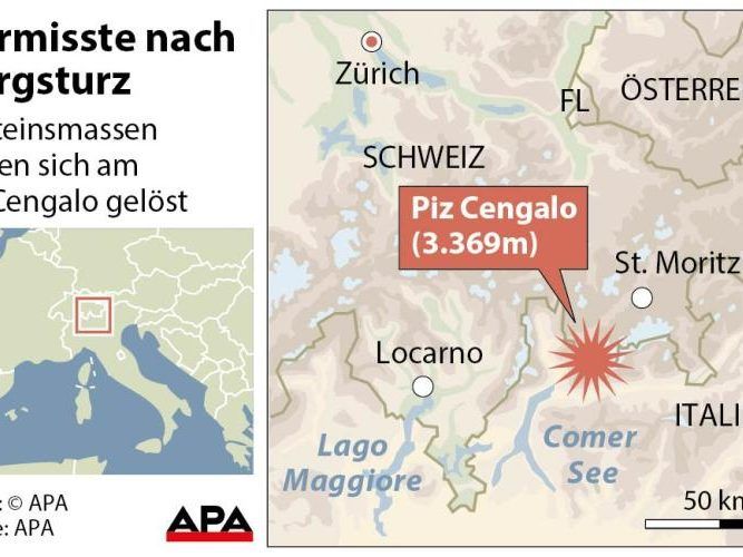 24.08.2017 Nach dem gewaltigen Felsabbruch in der Schweiz wurden am Donnerstagabend nach wie vor acht Menschen vermisst, darunter Deutsche und ein österreichisches Ehepaar.