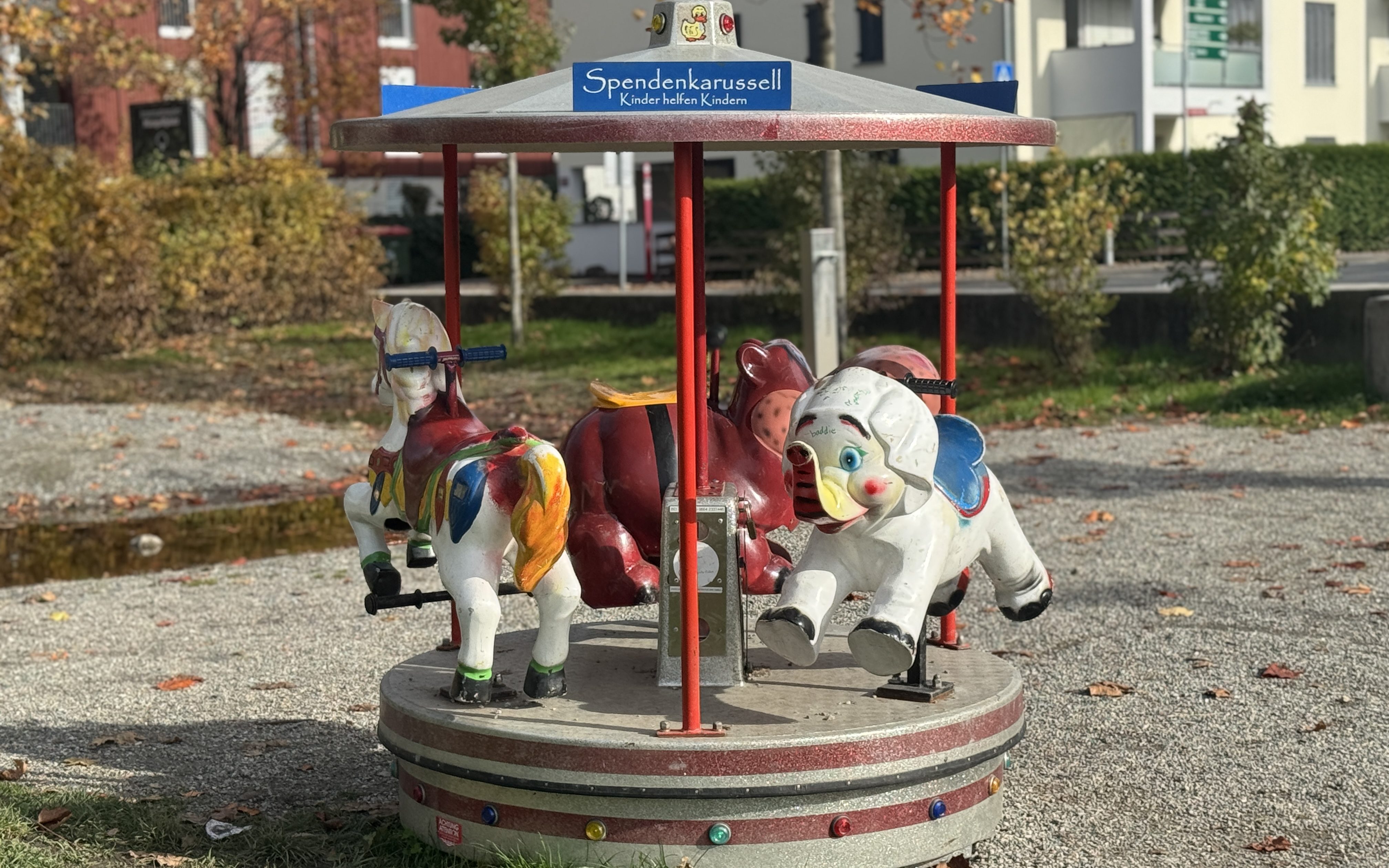 Ein kleines Karussell sorgt in Dornbirn derzeit für großes Rätselraten: Seit rund zwei Monaten dreht sich beim Spielplatz Vordere Achmühle ein buntes Mini-Karussell mit der Aufschrift "Kinder helfen Kindern". Doch wer dahintersteckt, ist zunächst völlig unklar.