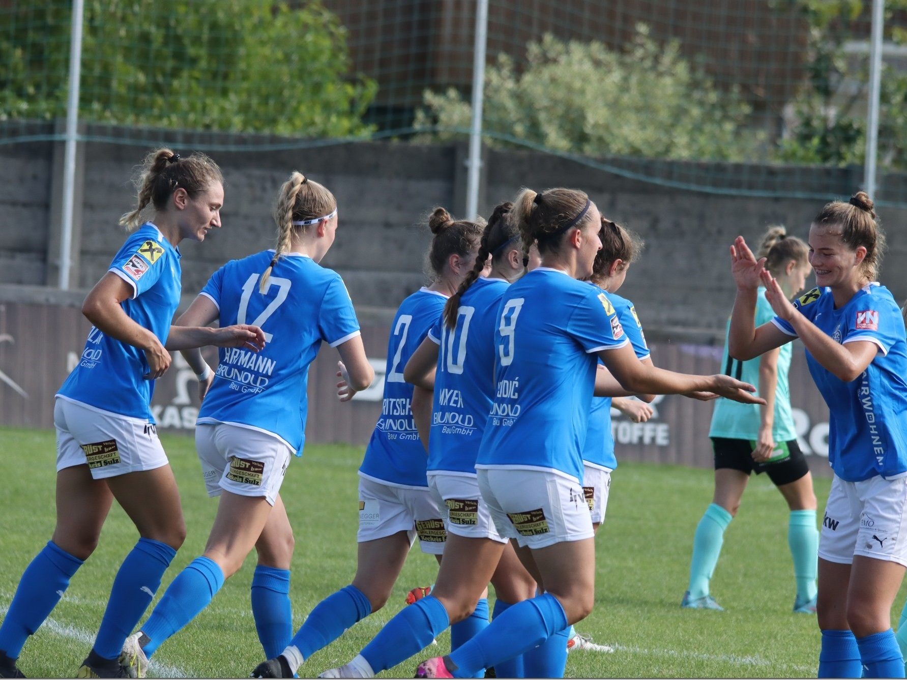 Mit Bravour entledigte sich der Tabellenführer SPG FC Lustenau/FC Dornbirn trotz dem Fehlen von Torfrau Leire Lizarralde, Vanessa Hartmann, Tamara Saric und Vera Isik der Aufgabe beim ehemaligen Bundesligaklub FC Südburgenland. Die Elf von Trainer Urs Mathis (63) gewann dank dem Doppelpack von der kroatischen Stürmerin Selma Kajdic (63./72.) und den Treffern von Carina Brunold (50.) und Catherine Irene Nolan (4.) klar mit 4:1. Damit überwintern Caroline Fritsch und Co. auf dem ersten Tabellenplatz und gehen als große Gejagte ins Frühjahr. Denn in den beiden noch ausstehenden Spielen im Herbst gegen Preding (h) und Schlusslicht Rankweil (a) ist der noch ungeschlagene Erstplatzierte und Aufstiegskandidat Nummer eins klar zu favorisieren. Sieben Punkte beträgt schon der Vorsprung auf das Sensationsteam Landhaus. Rankweil verlor in Preding mit 0:3 und bleibt abgeschlagen Letzter.TK