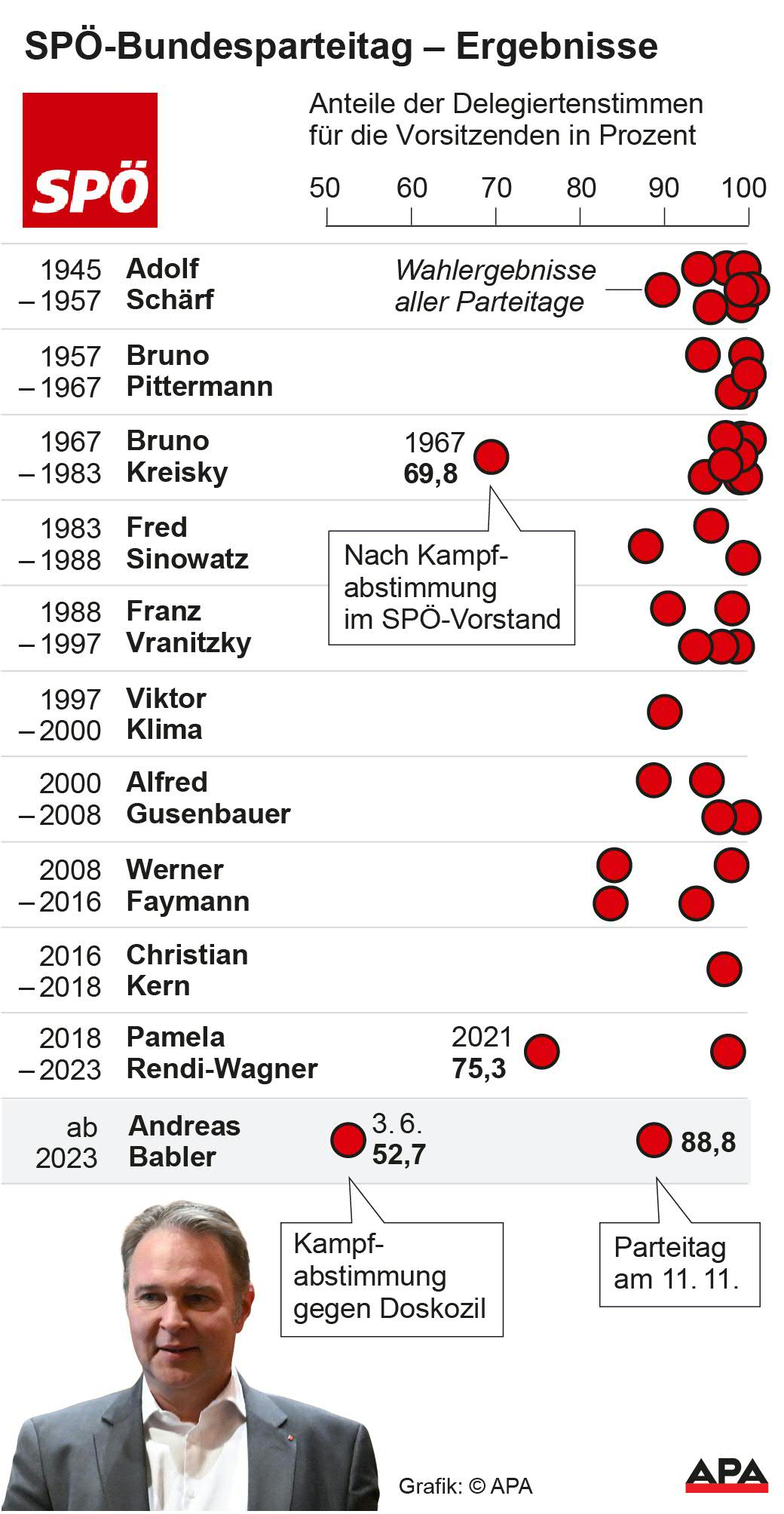 Das restliche Parteipräsidium bzw. Bablers Stellvertreter und Stellvertreterinnen wurden ebenfalls gewählt, und zwar mit hoher Zustimmung: Frauenchefin Eva-Maria Holzleitner erhielt 97,3 Prozent. Vizeklubchefin Julia Herr kam auf 94,4 Prozent. Kärntens Landeshauptmann Peter Kaiser bekam 98,5 Prozent. Mit Spannung erwartet worden war das Ergebnis für die Zweite Nationalratspräsidentin Doris Bures, eine Vertreterin der Wiener Landesorganisation. Wiens Bürgermeister Michael Ludwig verzichtete ja auf eine Kandidatur. Bures wurde aber mit 92 Prozent bedacht.