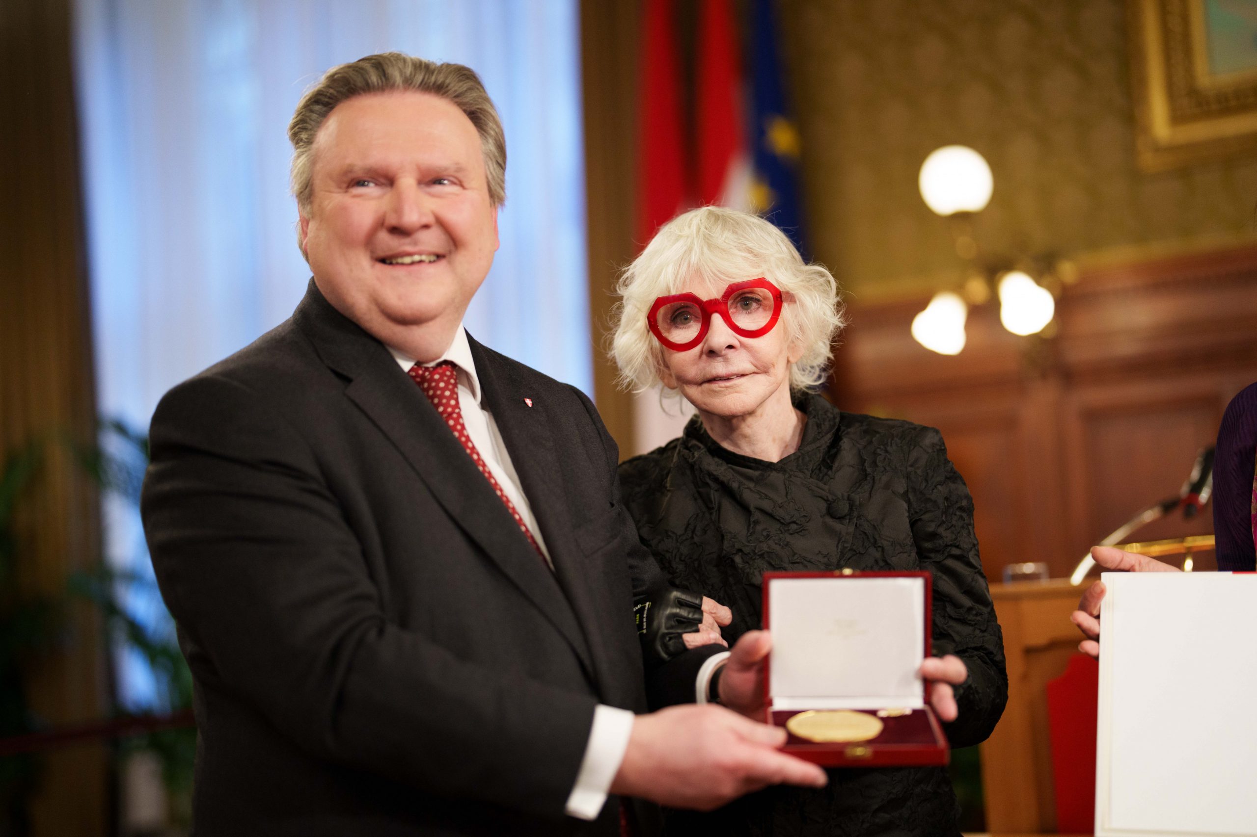 Die Schauspielerin, Kabarettistin, Regisseurin und Autorin Dolores Schmidinger (77) ist am Montagnachmittag in Anwesenheit von Wiens Bürgermeister Michael Ludwig (SPÖ) im Wiener Rathaus mit der "Ehrenmedaille der Bundeshauptstadt Wien in Gold"ausgezeichnet worden.