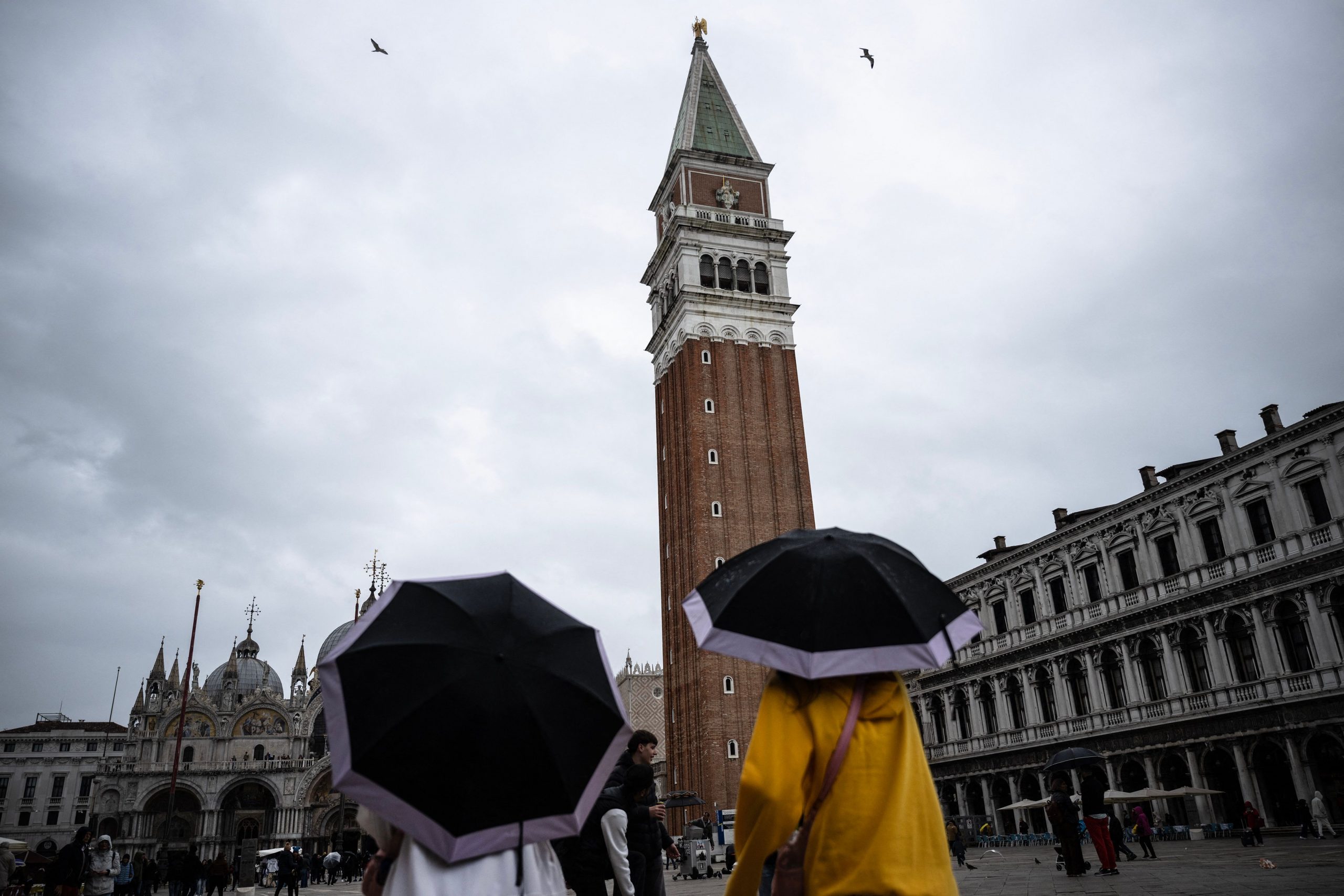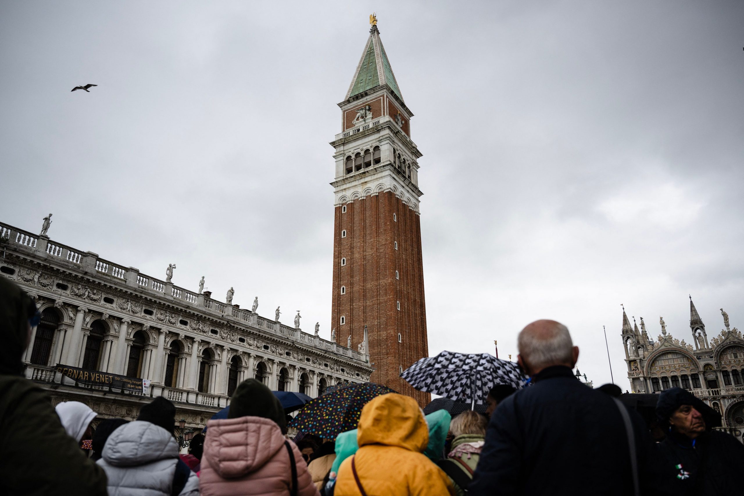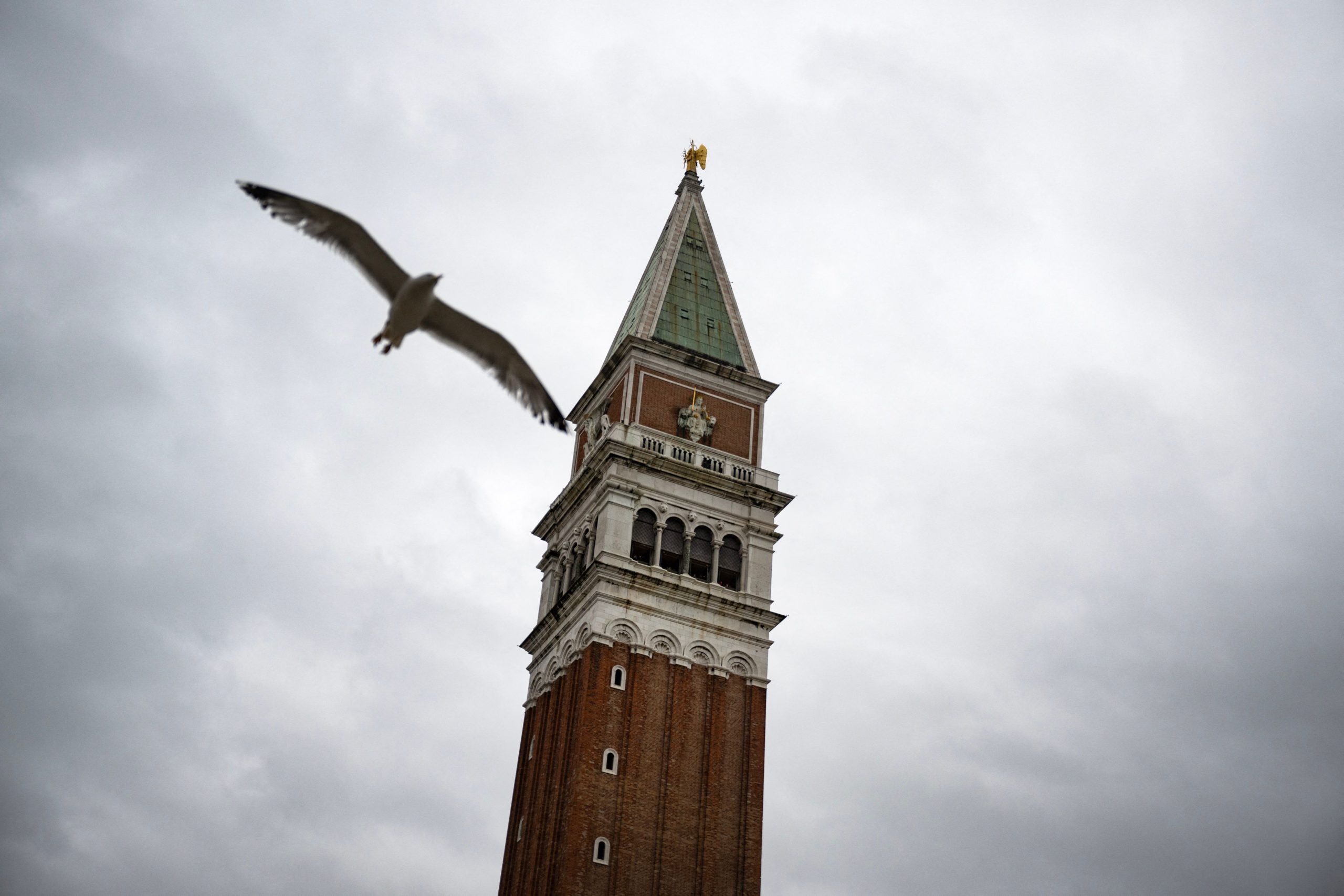 Vom Glockenturm des Markusdoms in Venedig sind einige Stahlbetonteile herab gestürzt.
