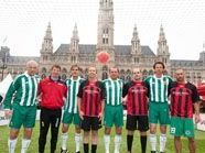 Highlight und Abschluss des viertägigen Fußballfestes war ein Promi-Turnier am Sonntagnachmittag moderiert von Michael Berger, bei dem Starkoch Bernie Rieder, Mr. Ferrari Heribert Kasper, Radiomacher Alex Nausner und Stürmer Niki Soucha ihr Können gegen Rasen-Legenden wie Peter Schöttel, Franz Blizenec, Walter Skocik und Andreas Reisinger unter Beweis stellten. Ich bleibe lieber beim Kochlöffel und zaubere ein Champions League-Menü”, schmunzelte Rieder nach der 4:3-Niederlage im strömenden Regen.