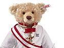 Teddybär Radetzky beeindruckt nicht nur durch sein edles Outfit und die mitreißende Musik, er ist auch von strammer Gestalt und blickt ernsthaft, souverän und entschlossen in die Welt. Als Hinweis auf seine Exklusivität trägt der bärige Feldherr einen vergoldeten Knopf mit weißem Fähnchen im Ohr. Wie jeder limitierte Steiff Bär wird er mit einem fortlaufend nummerierten und signierten Originalitäts-Zertifikat überreicht.