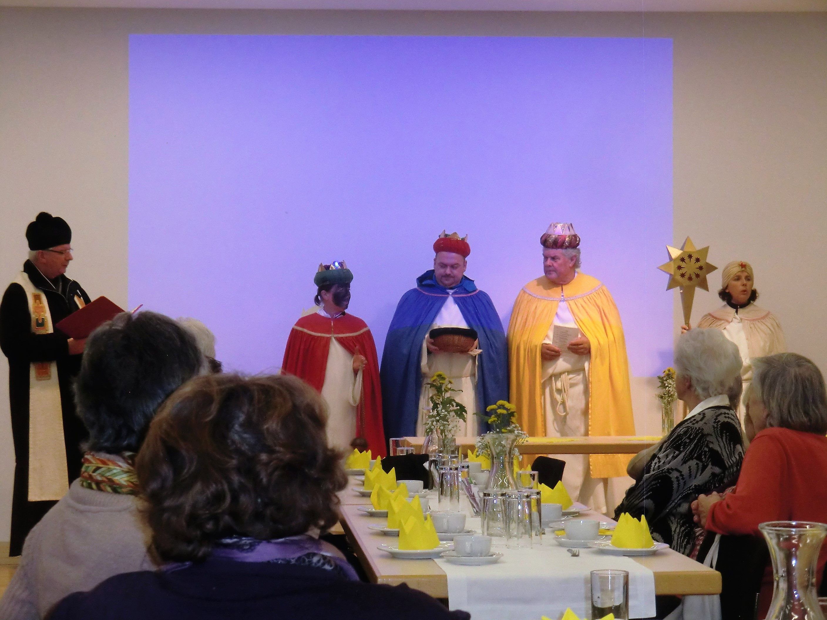 Anschließend an den Vortrag und den Sternsingerbesuch wurden die Seniorinnen und Senioren mit Kaffee oder Tee und schmackhaften Kuchen und Torten selbst gebacken vom Seniorenteam unter der Leitung von Brunhilde Einwaller verwöhnt. Hier gilt einmal mehr ein besonderer Dank dem rührigen Seniorenteam der Pfarre Heilig Kreuz.