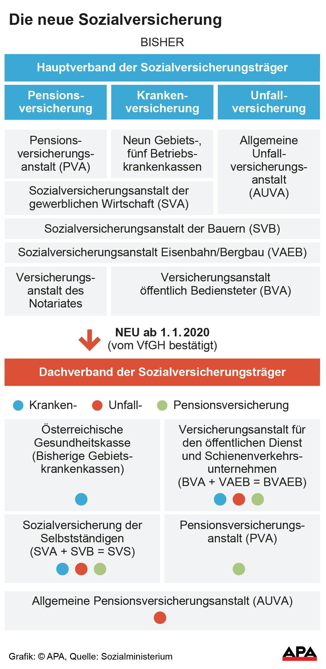 Im Bereich der Gesundheit werden 7,2 Mio. Menschen von den Gebietskrankenkassen in die neue Österreichische Gesundheitskasse (ÖGK) transferiert.