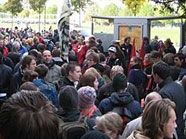 Kurz vor 16.30 Uhr kam dann der Zug wieder beim Gebäude der Gesellschaftswissenschaften an. Dort strömten die Demonstranten in den größten Hörsaal des Hauses und besetzten diesen – nach dem Vorbild aus anderen österreichischen Städten – auf unbefristete Zeit.