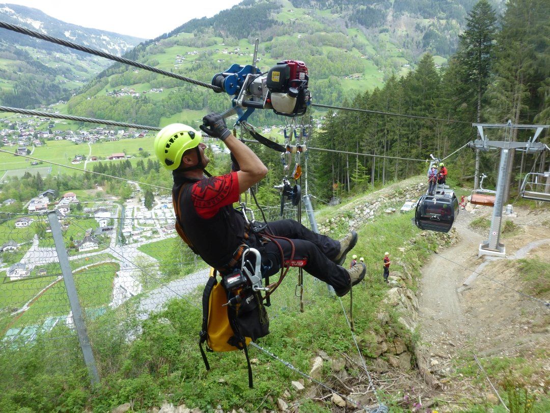 „Mit der neuen Anlage ist ein lange gehegter Wunsch in Erfüllung gegangen”, freut sich der Ortsstellenleiter der Bergrettung Schruns-Tschagguns, Rupert Pfefferkorn, dass nun oberhalb des Nordic-Zentrums Tschagguns optimale Trainingsmöglichkeiten für die Bergretter im ganzen Land zur Verfügung stehen. In Zusammenarbeit mit Firmen aus der Region wurde eine 90 Meter lange Übungsseilbahn errichtet, an der eine 6er-Gondel, ein 4er- sowie ein 6er-Sessel mit Haube in einer Höhe von bis zu 10 Metern baumeln.Unter diesen realistischen Bedingungen können die Retter nun Berge-Maßnahmen üben und entwickeln, Rettungs- und Bergegeräte testen sowie Rettungskräfte schulen. Die Mitglieder der Bergrettung sowie freiwillige Helfer haben bei der Realisierung kräftig mit angepackt. „Durch massive Eigenleistungen sowie dank dem Entgegenkommen der Unternehmen und verschiedener Gönner war es möglich, die Anlage ohne öffentliche Gelder zu errichten”, ist Rupert Pfefferkorn stolz auf seine Mannschaft.