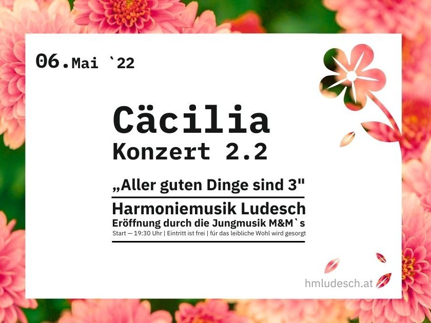 Und am Freitag, den 06. Mai um 19:30 Uhr werden wir unser verschobenes Cäciliakonzert nachholen. Dazu laden wir alle Interessierten aus Nah und Fern herzlich in die Blumenegghalle nach Ludesch ein.