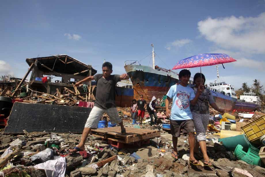 Von dem Sturm insgesamt betroffen sind nach UN-Angaben etwa 9,5 Millionen Menschen. Panik schien es nicht zu geben – vielmehr gingen die Menschen wie betäubt durch die Straßen. Manche suchten in Trümmern nach Brauchbarem.