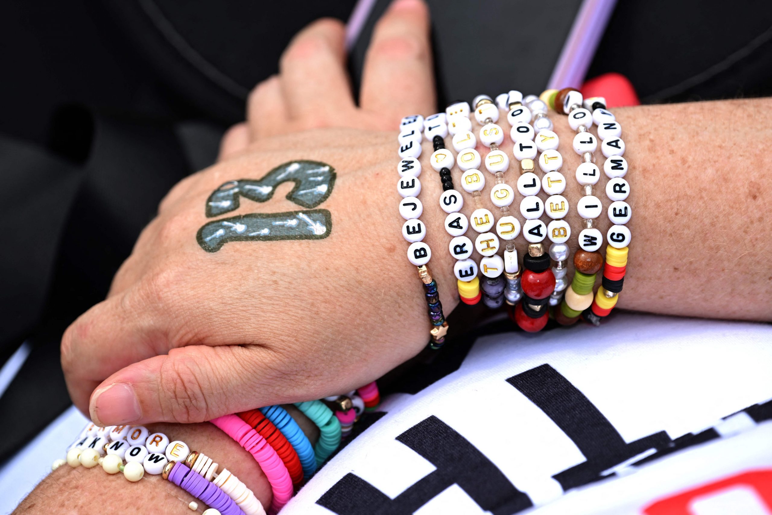 Zumindest viele Fans hoffen eher auf privates Glück - eine Verlobung und Familie mit ihrem Freund Travis Kelce. Die beiden sind seit gut einem Jahr ein Paar. Laut pixeligen Fotos und Videos in sozialen Netzwerken schaut Kelce wohl auch in Gelsenkirchen in einer der Logen zu. Es ist längst nicht sein erster Besuch bei einem Konzert seiner Liebsten. Bei einem von Swifts Auftritten in London war der NFL-Star sogar Teil der Choreographie auf der Bühne.