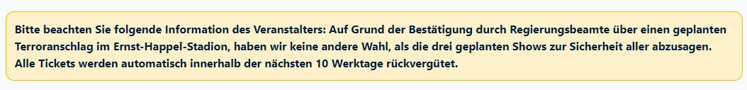 "Auf Grund der Bestätigung durch Regierungsbeamte über einen geplanten Terroranschlag im Ernst-Happel-Stadion, haben wir keine andere Wahl, als die drei geplanten Shows zur Sicherheit aller abzusagen", teilte der Veranstalter auf "Instagram" mit.