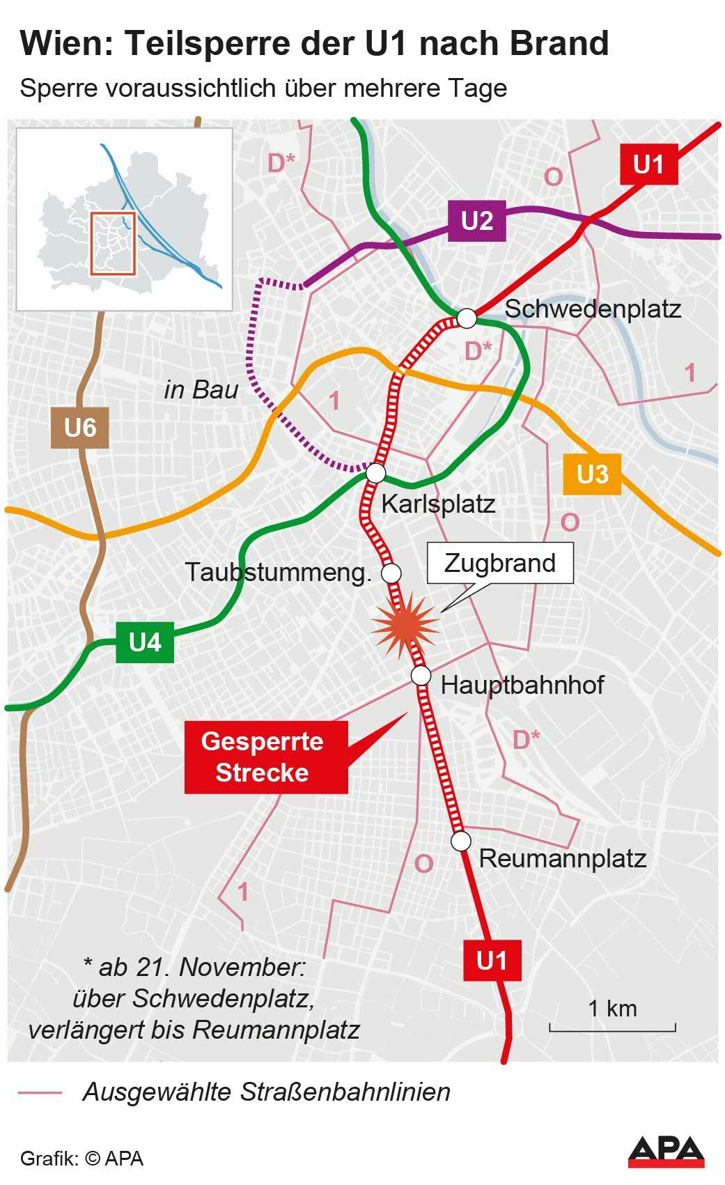 Zu den polizeilichen Brandermittlungen des Landeskriminalamts Wien wurde ein unabhängiger Brandsachverständiger zugezogen, berichtete die Wiener-Linien-Geschäftsführerin. "Wir beteiligen uns nicht an Spekulationen und werden die Ursache - da bitte ich um Verständnis - dann kommunizieren, wenn es dazu gesicherte Informationen gibt", betonte sie. Das Feuer sei in der Mitte des Zuges mit sechs Waggons aufgetreten. Der Zug war im Tunnel zwischen den Stationen Taubstummengasse und Südtiroler Platz/Hauptbahnhof brennend zu stehen gekommen.