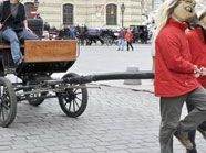 “Wir wollen mit diesem Rollentausch darauf aufmerksam machen, was Fiakerpferde Tag für Tag in Wien durchleben müssen”, erklärte Vier-Pfoten-Geschäftsführerin Johanna Stadler der APA. Die Kundgebung wurde von ihrer Organisationen, dem Verein gegen Tierfabriken (VGT), dem Wiener Tierschutzverein und dem Pferdeschutzverband organisiert.