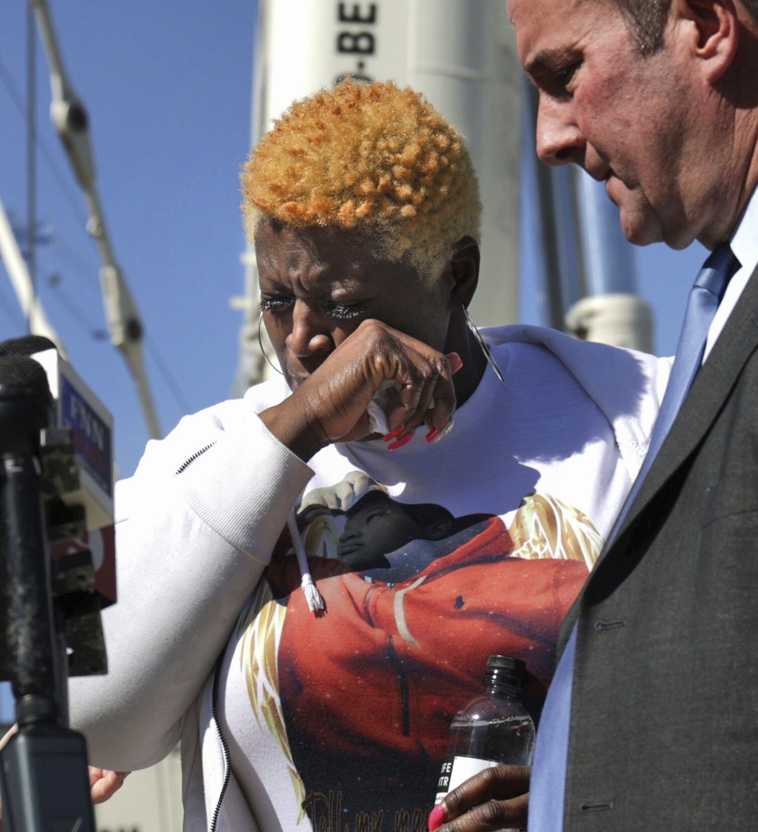 Nekia Dodd, die Mutter von Tyre Sampson, spricht mit den Medien über die ehemalige Orlando-Freefall-Achterbahn im ICON Park. ©APA/Burbank