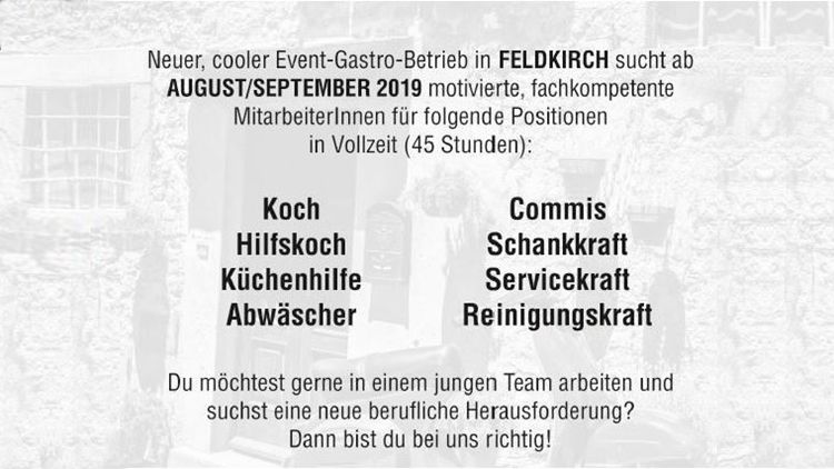 Wir freuen uns auf deine Bewerbung mit Foto und kompletten Lebenslauf an feldkirch@flax.at – z. Hd. Herrn Mag. Müller.