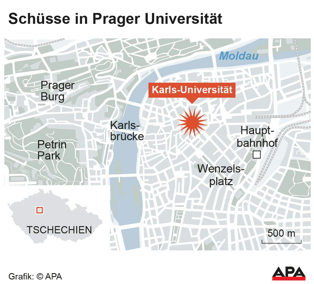 Nach ersten Informationen soll es zu dem Vorfall an der Philosophischen Fakultät der Karls-Universität am Jan-Palach-Platz gekommen sein. Dort werden Geisteswissenschaften unterrichtet. Die Polizei war mit einem Großaufgebot an Ort und Stelle, darunter waren Spezialkräfte. Der Jan-Palach-Platz befindet sich nur wenige hundert Meter von der bekannten Karlsbrücke entfernt, dem Wahrzeichen der Stadt an der Moldau. In einem Video eines Users auf X waren Menschen zu sehen, die über die bei Touristen sehr beliebte Karlsbrücke flüchteten. Im Begleittext war zu lesen, dass sie sich von den Schüssen, die in der Nähe zu hören gewesen seien, entfernten.
