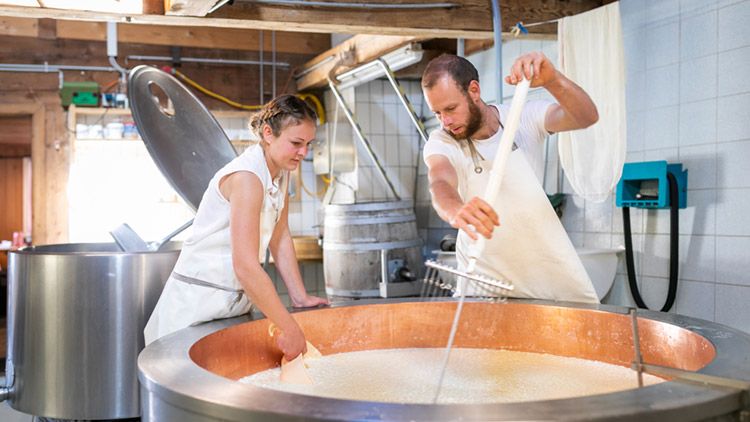 Die angenehme Frische, die hier auf 1.380 Metern herrscht, spiegelt sich in den jungen Gesichtern des Paares wider. Dass eine 25-Jährige und ein 27-Jähriger den Sommer gemeinsam auf der Alpe verbringen, böte idealen Stoff für einen Heimatroman à la Ludwig Ganghofer. Doch das wäre nicht mehr als verklärte Romantik. „Viele setzen das Alpleben mit Idylle gleich“, weiß Nicole Steurer zu berichten. „Dabei stecken viel harte Arbeit und Handwerk dahinter.“ Der Tag beginnt meist um halb sechs und endet oft erst nach 22 Uhr.
