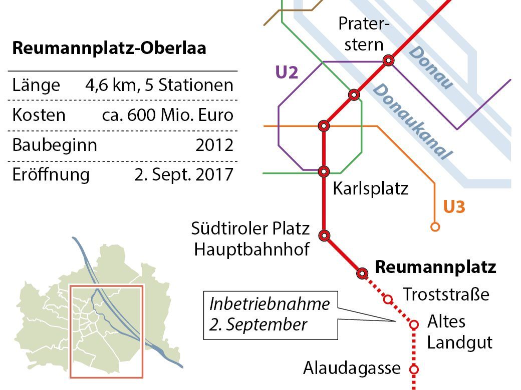 - Linie U1: Neue Stationen Troststraße (7A, 65A, 66A), Altes Landgut (15A), Alaudagasse (16A, 17A, 19A, 67A, 67B), Neulaa, Oberlaa (17A, 68B, 70A, Regionalbusse).