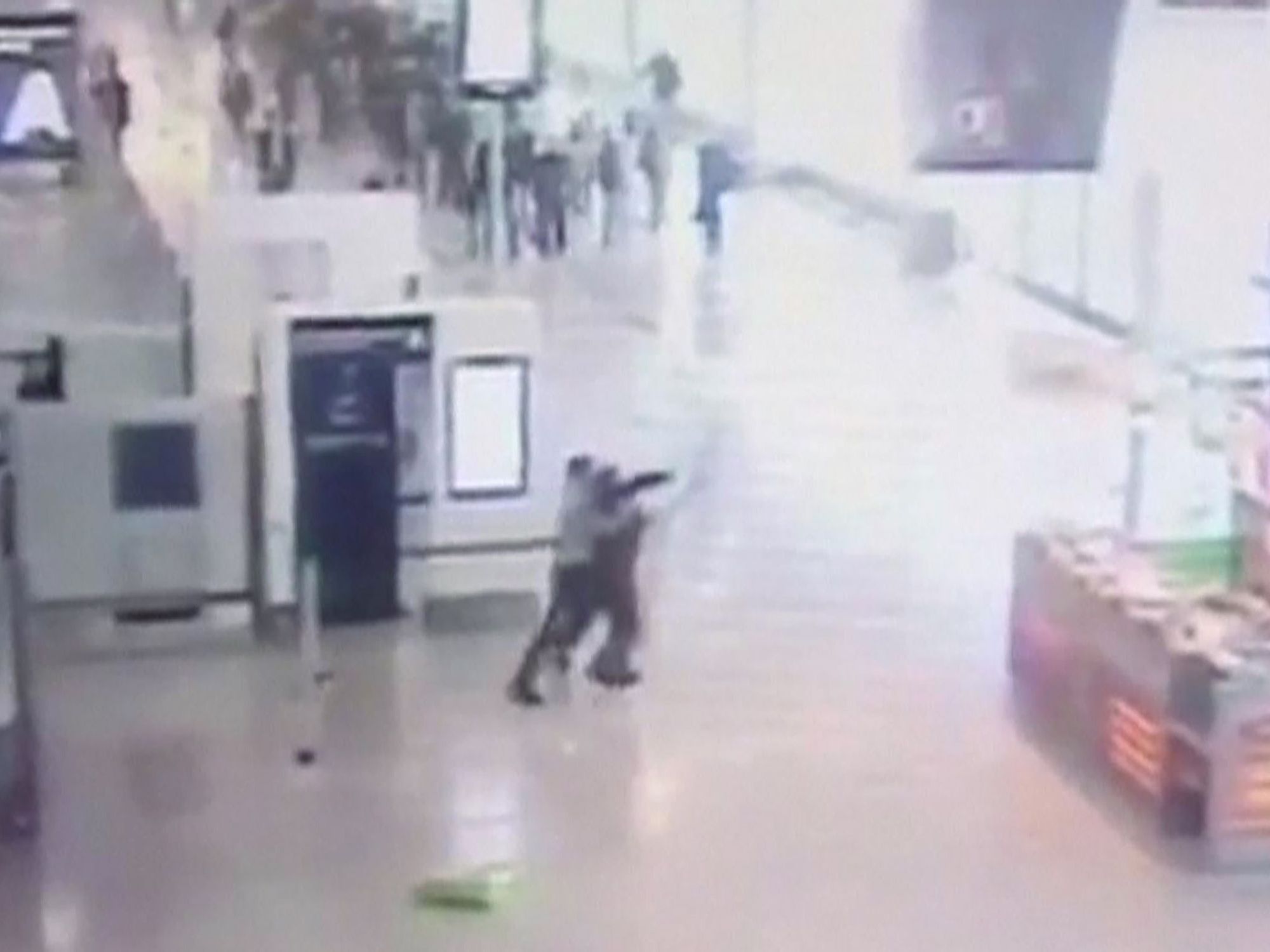 Das am Montag von der US-Nachrichtenagentur AP veröffentlichte Video zeigt, wie ein Angreifer sich in der Flughafenhalle von hinten der Soldatin nähert, plötzlich eine Tüte fallen lässt und sich auf sie stürzt.
