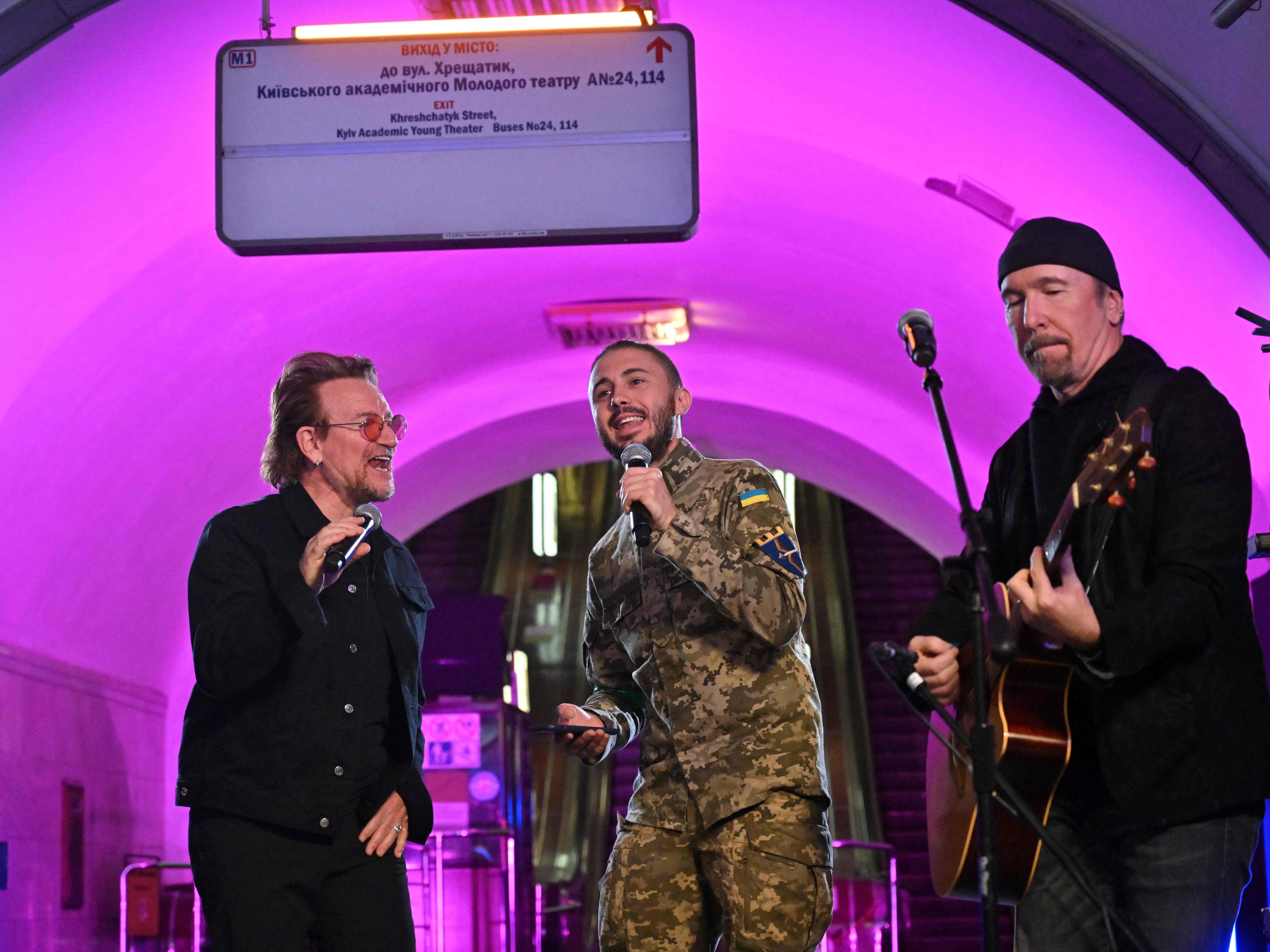 Ukraine: Bono und The Edge spielten in Kiewer U-Bahnhof