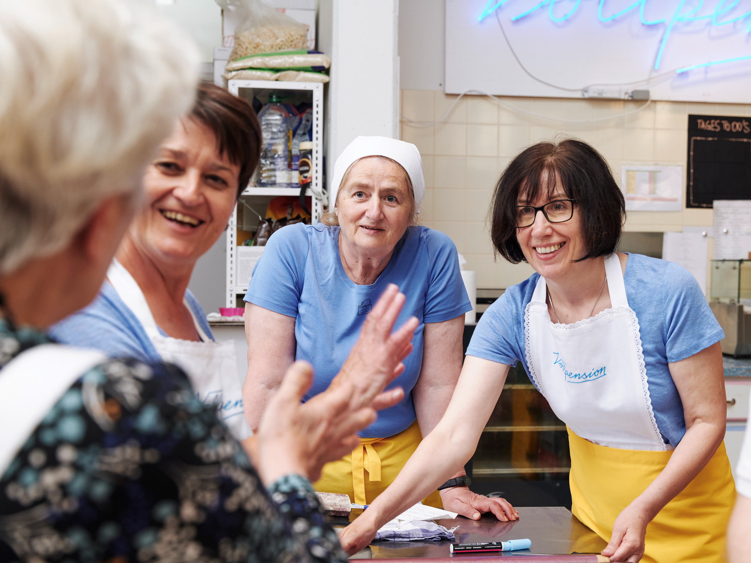Leider hat die Initiative der Vollpension auch einen bitteren Beigeschmack: Denn verdienen Geflüchtete mehr als 110 Euro im Monat dazu, verlieren sie ihre Grundversorgung in der Höhe von 250 Euro. Die Seniorinnen können deshalb nicht so viel mitbacken, wie sie gerne möchten. Doch auch dafür haben die Gründerinnen der Vollpension einen Plan: „Eine Möglichkeit, die wir gerade überprüfen ist ein Vollpension Trinkgeldfonds. Das schaut so aus, dass alle bei uns mit den Omas aus der Ukraine solidarisch sind: Wir werden das Trinkgeld also so aufteilen, dass für unsere Kolleginnen trotz der Restriktionen eine faire Entlohnung rauskommt,“ so Julia Krenmayr, Mitgründerin des Generationencafés
