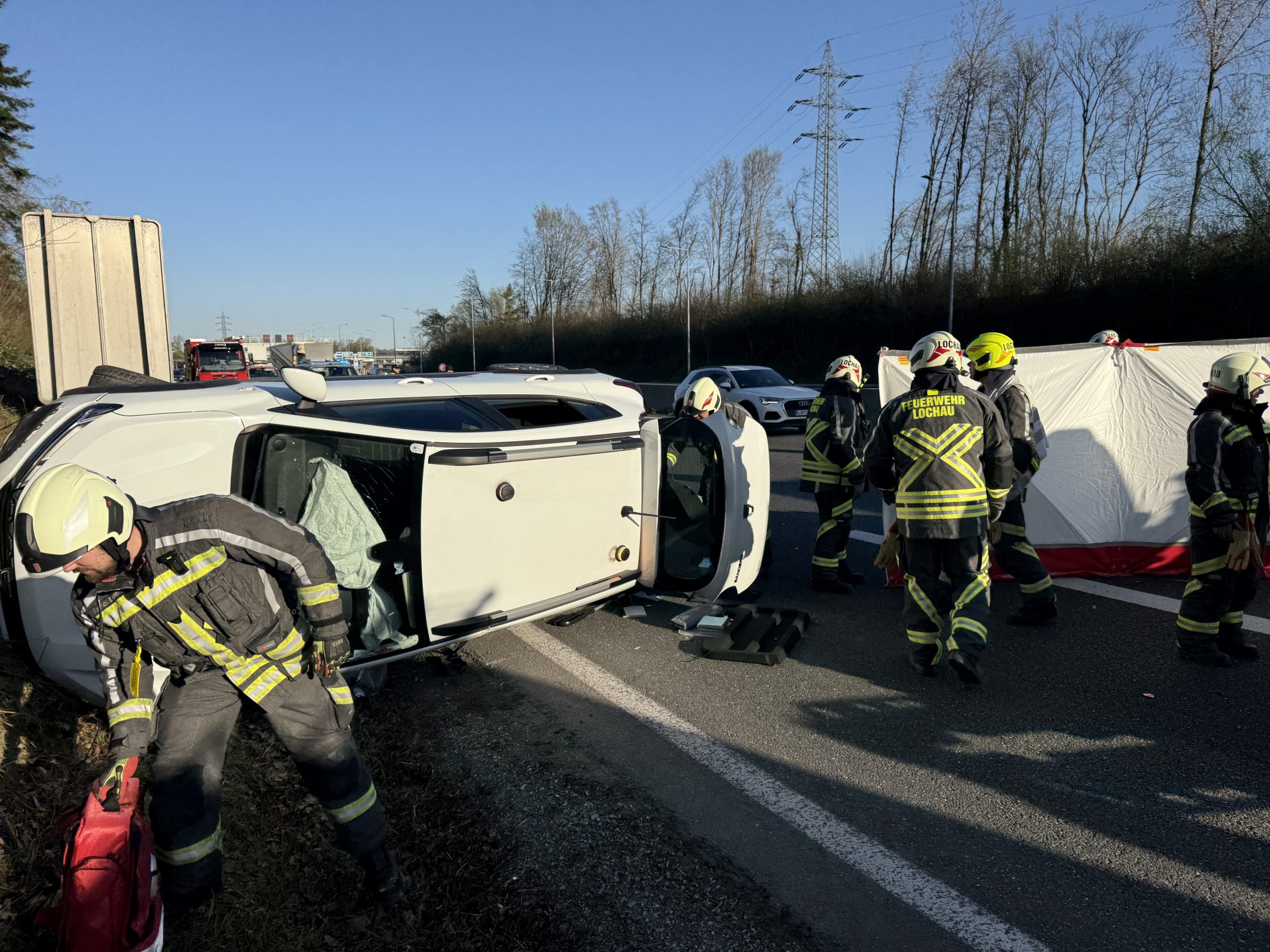 Unfall auf der A14: Frau nach Überschlag bei Lochau von Feuerwehr befreit