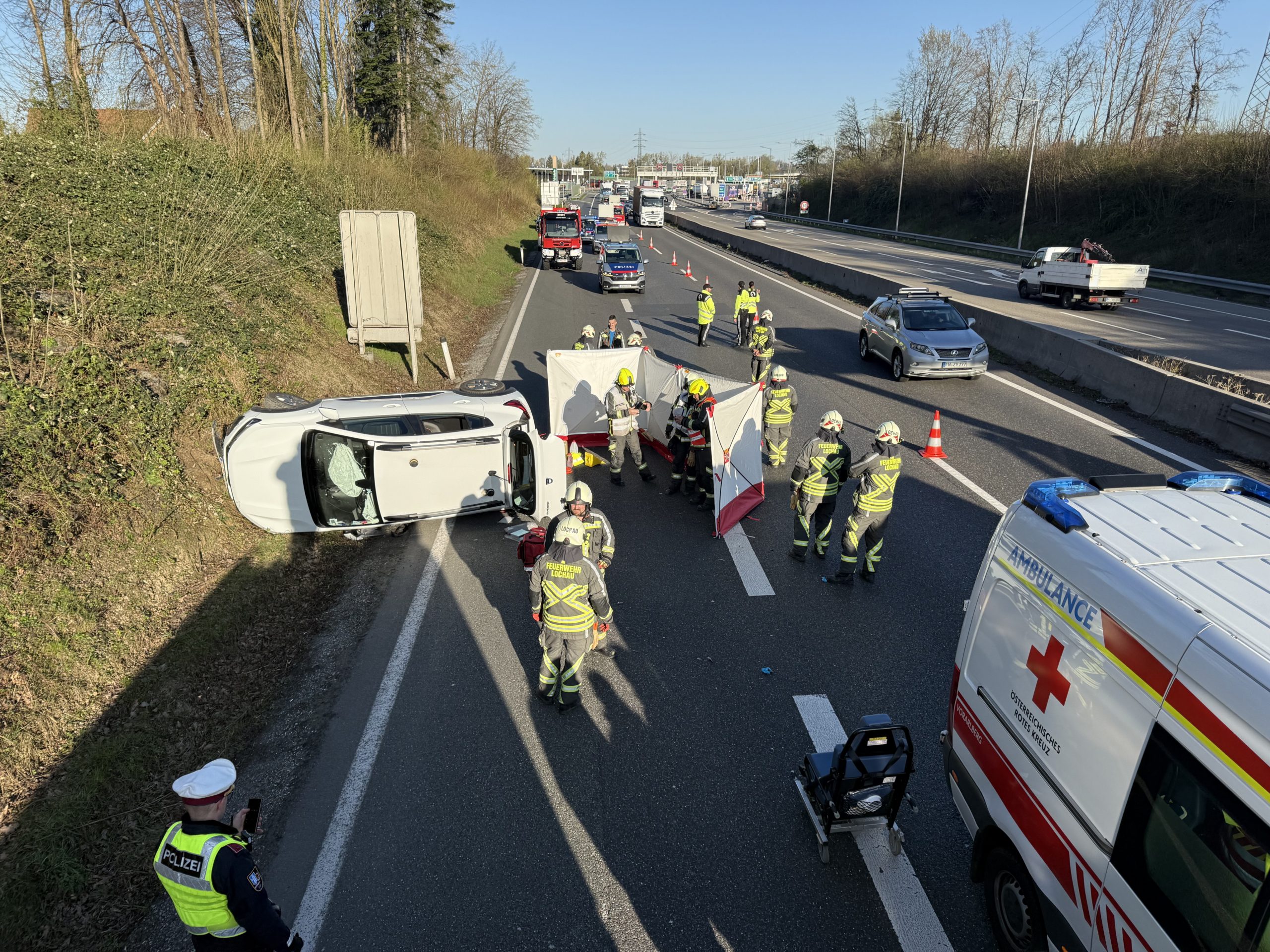 Gegen 8.05 Uhr kam es am Montag auf der Rheintalautobahn (A14) in Fahrtrichtung Tirol zu einem Verkehrsunfall. Zwischen der Raststätte Bodensee und der Abfahrt Lochau überschlug sich ein Tunnelbegleitfahrzeug aus bislang unbekannter Ursache. Das Fahrzeug kam in Seitenlage zum Stillstand. Die Lenkerin war nach dem Unfall im Fahrzeug eingeschlossen.