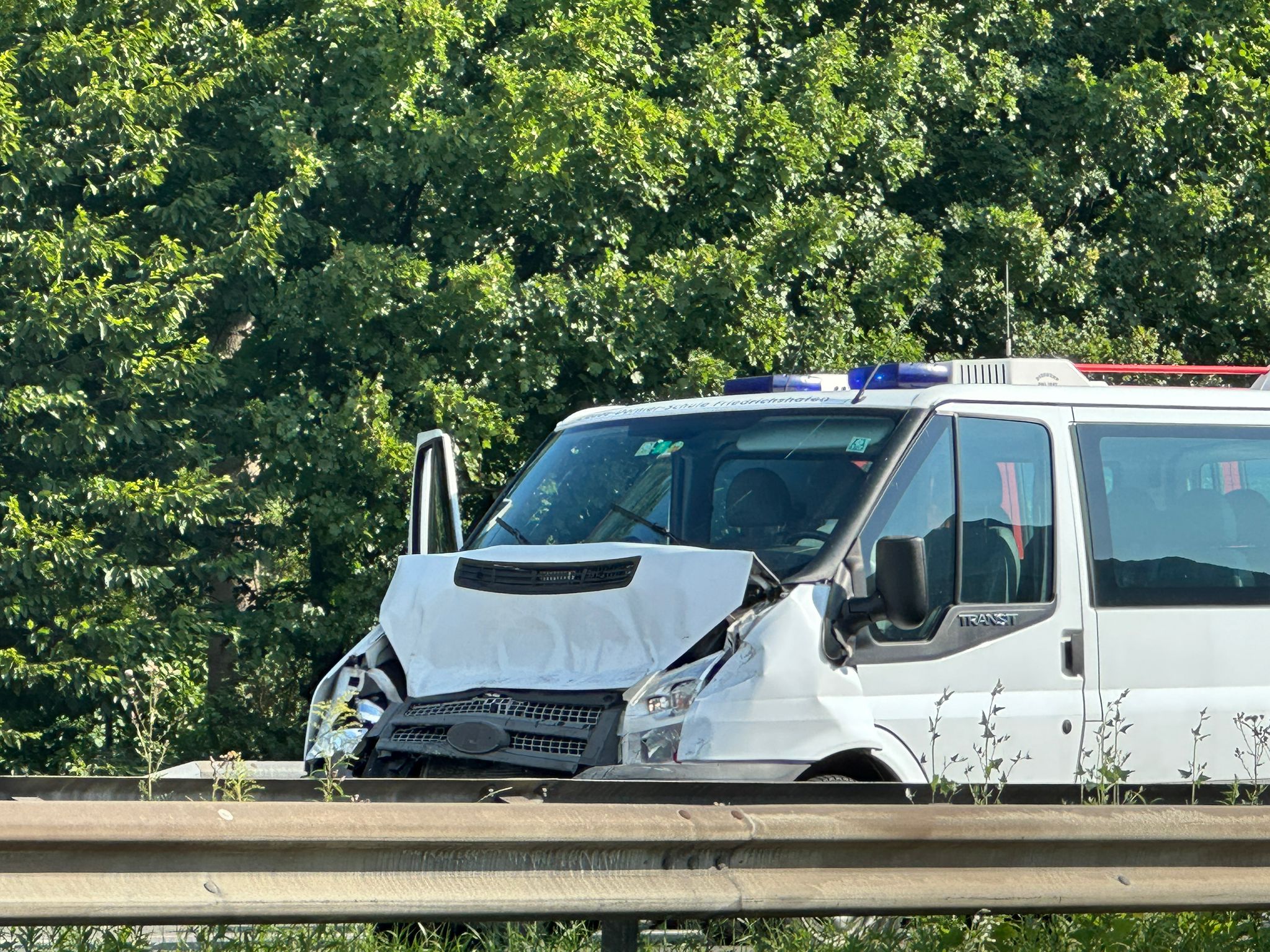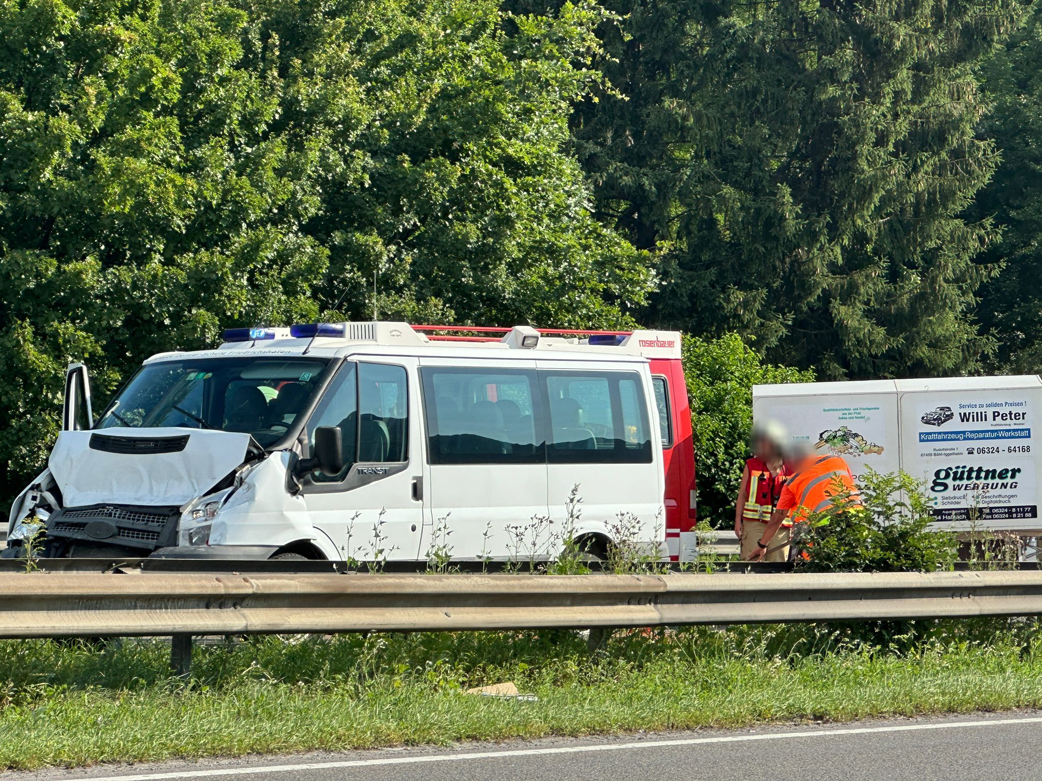 Ein Lieferbus erlitt einen deutlichen Frontschaden, das zweite beteiligte Fahrzeug war vor Ort nicht mehr sichtbar.