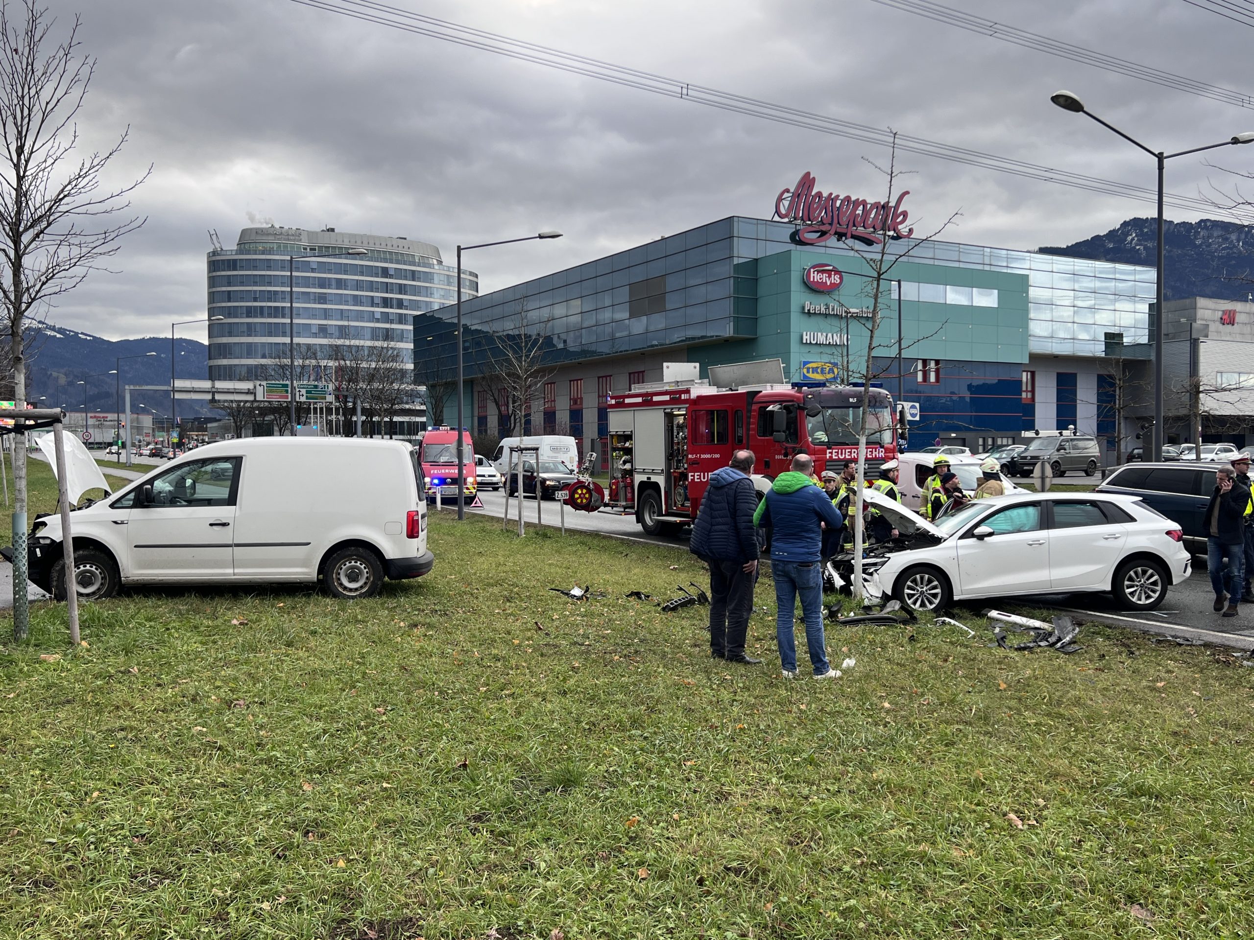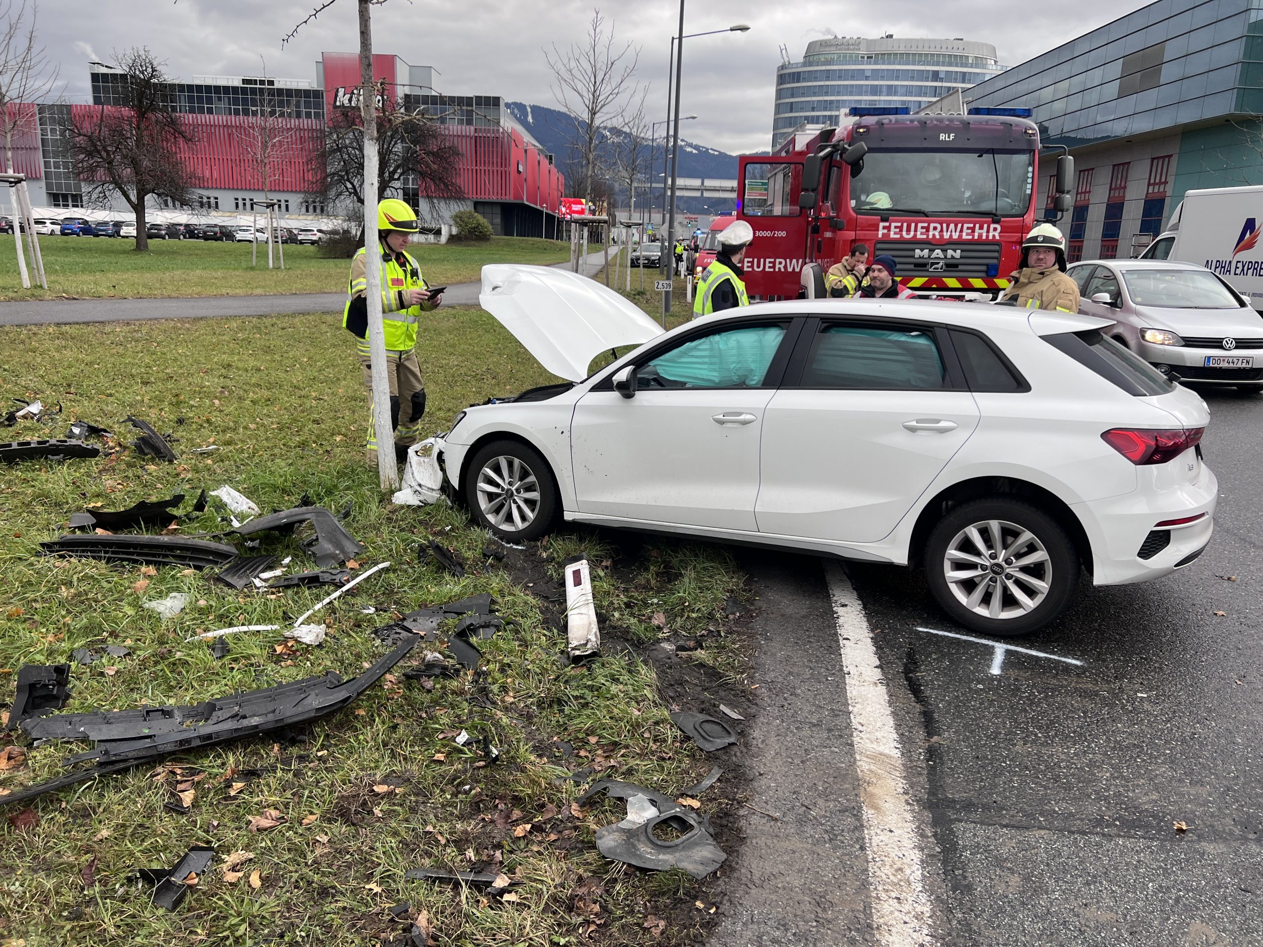 Gegen 9.30 Uhr ereignete sich ein Unfall, bei dem ein Pkw-Lenker nach dem Verlassen der Autobahn am Messepark-Kreisverkehr die Kontrolle über sein Fahrzeug verlor.