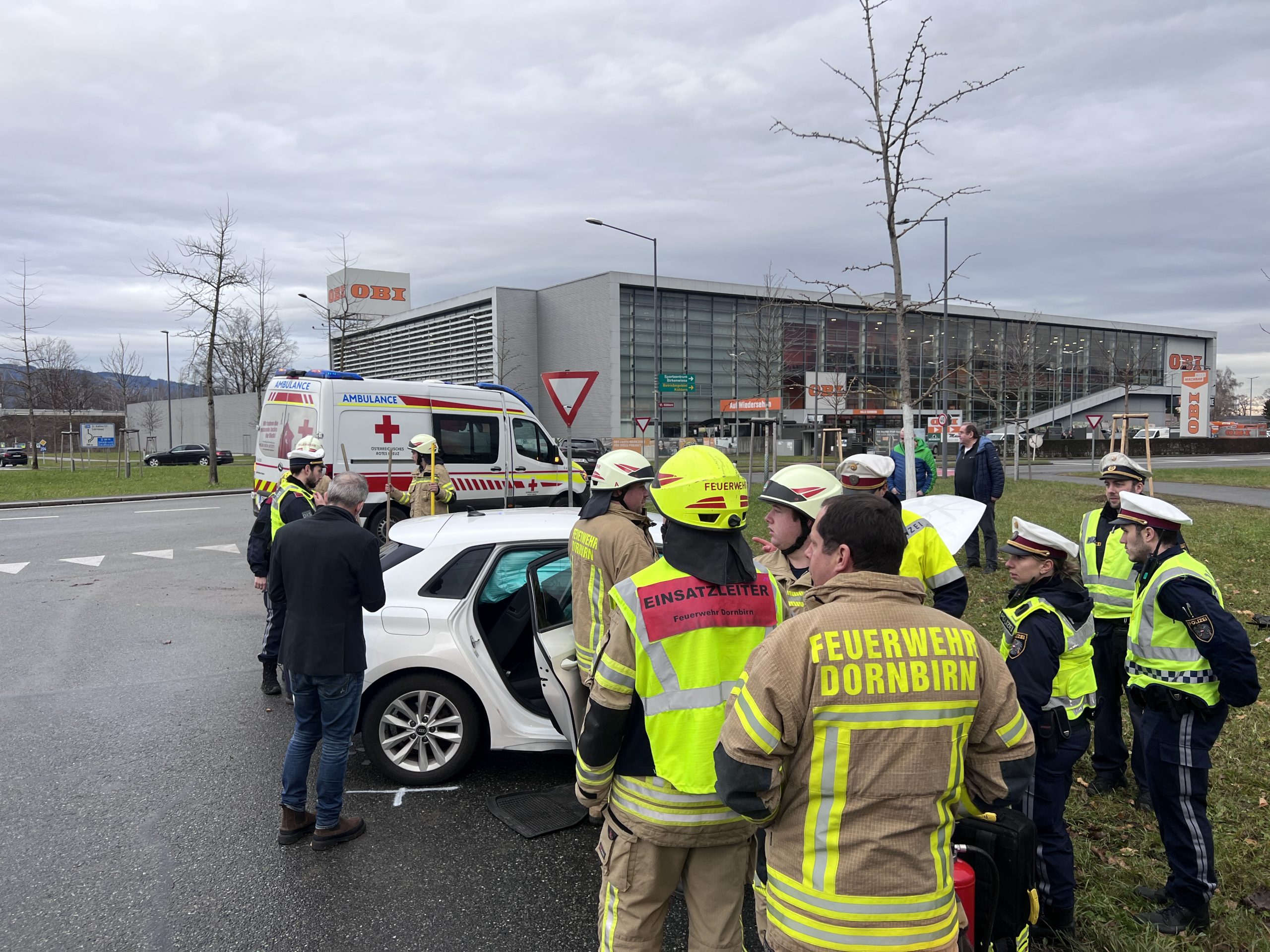 Einsatz nach einem Unfall in Dornbirn ©VOL.AT/Vlach