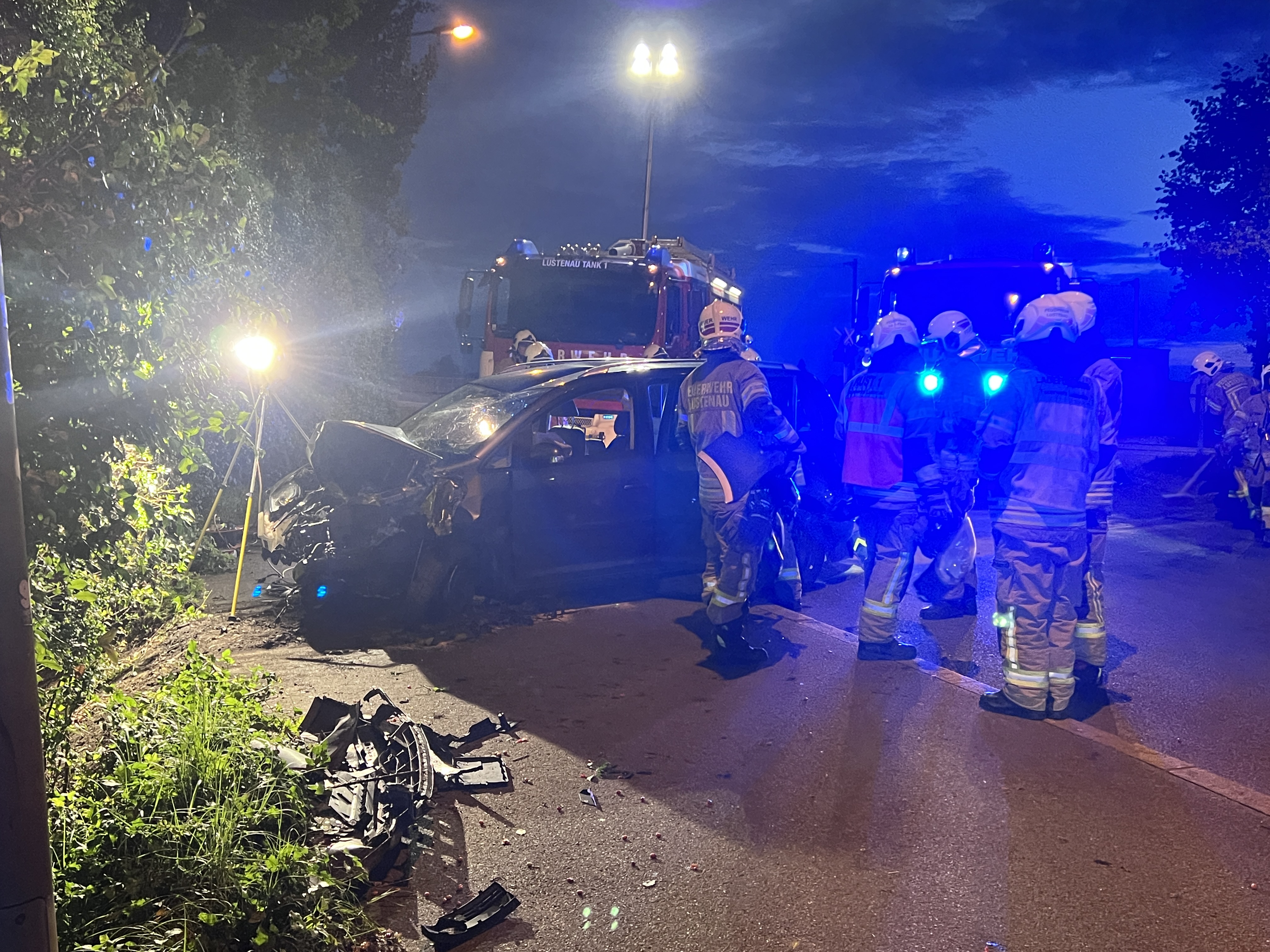 Von einem Zeugen konnte beobachtet werden, wie der Lenker, vermutlich ein 31-jähriger in Lustenau wohnhafter Mann, nach dem Unfall aus dem Auto stieg und zu Fuß den Unfallort verließ.