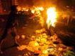 Zuvor bewarfen Demonstranten, darunter Rechtsextreme und Fußball-Hooligans, Polizisten mit Steinen, Flaschen und Brandsätzen. Die Polizei setzte Tränengas und Wasserwerfer ein. Vor dem Gebäude gingen zwei Autos in Flammen auf. Laut Rettungsdiensten wurden mindestens 20 Personen teils schwer verletzt. Darunter sollen sich auch Polizisten befinden.