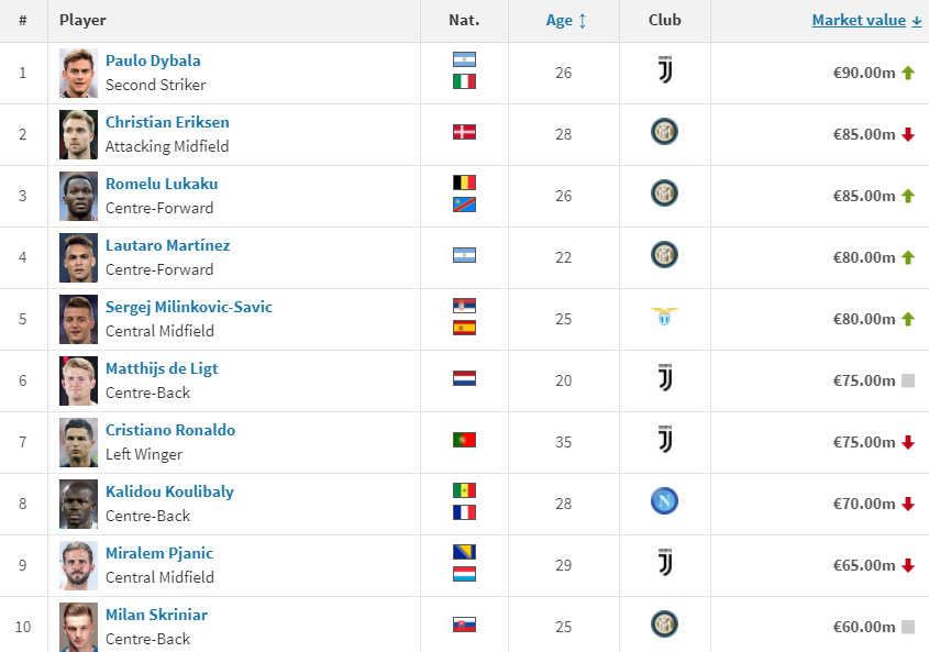 Ganz so schnell wird der 35-Jährige wohl auch nicht mehr auf die Website schauen wollen. Mittlerweile liegt der 35-Jährige in der aktuellen Auflistung mit einem Marktwert von 75 Millionen nämlich nur noch auf Platz 7.