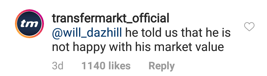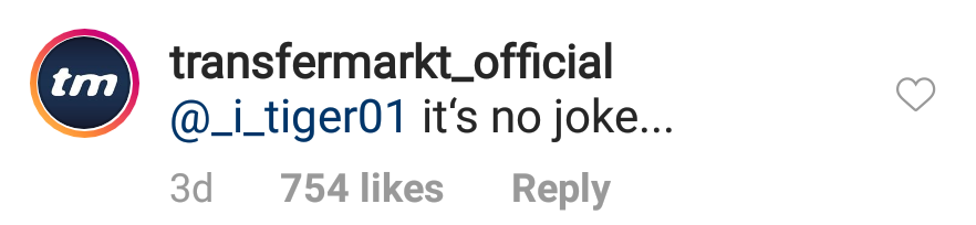 "Er hat uns gesagt, dass er nicht glücklich mit seinem Marktwert ist", heißt es in einem weiteren Kommentar. Viele der Follower konnten es nicht so recht glauben und dachten, dass es sich dabei nur um einen Spaß handelt. Daraufhin bestätigte "Transfermarkt" aber die vorherigen Aussagen: "Es ist kein Scherz..."