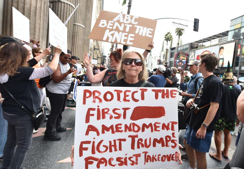 Die Entscheidung des Senders rief auch Demonstrationen hervor. Unterstützerinnen und Unterstützer Kimmels sprachen sich auf den Straßen für Meinungsfreiheit und gegen politischen Druck auf Medien aus.