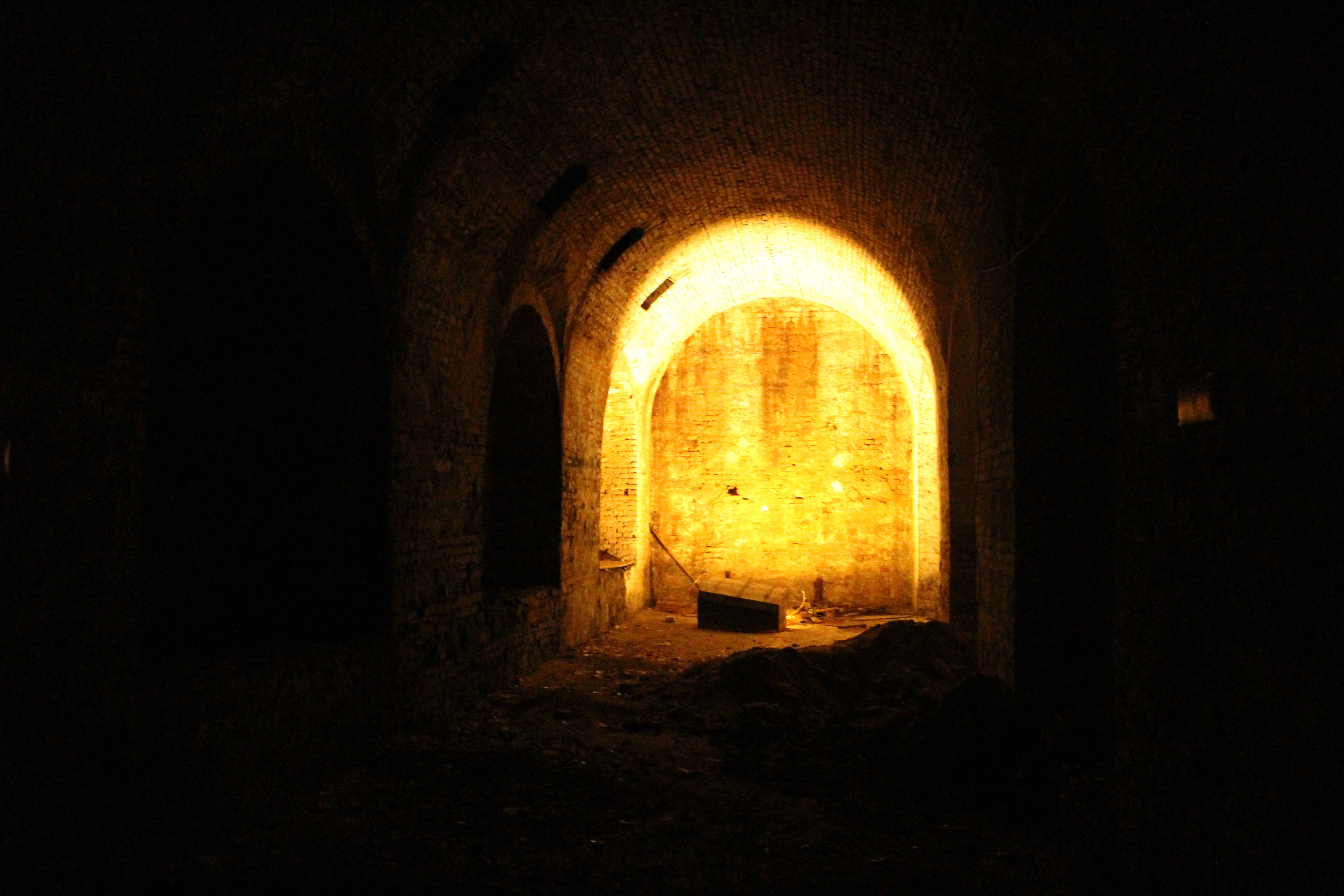 Es ist dunkel und kalt. Von den Ziegelmauern des Kellers geht ein modriger Geruch aus. Unsere kleine Gruppe steht und wartet im Dunkeln. Leises Atmen ist zu hören. Dann macht unser Wiener Unterwelten-Leiter Lukas Arnold das Licht an. Es erleuchtet am anderen Ende eines langen, hohen Kellergewölbes eine einsame Holztruhe. Eine unheimlich schöne Szenerie für ein Foto.