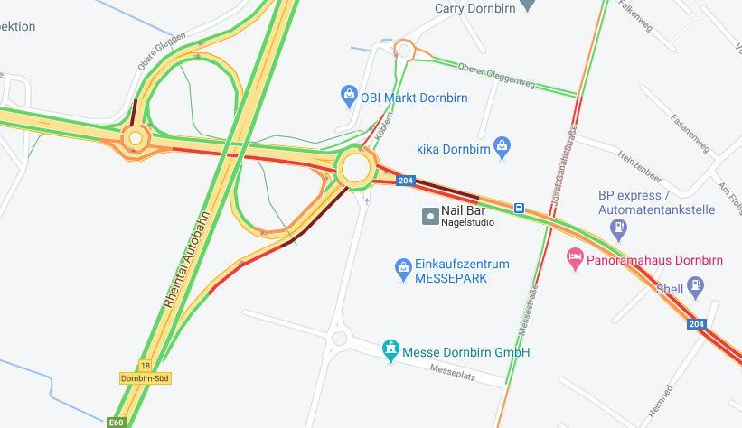 Rund um den Messepark in Dornbirn herrscht reges Verkehrsaufkommen. Autofahrer kommen derzeit nur sehr langsam voran. Auch die Parkplätze beim und rund um den Messepark sind so gut wie voll.