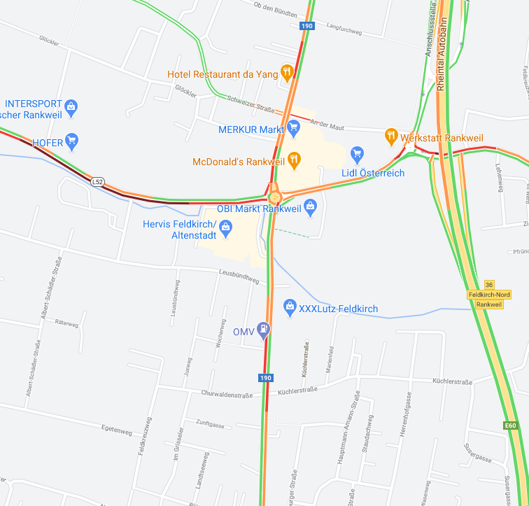 Auch rund um den Kreisverkehr auf der L52/L190 zwischen Rankweil und Feldkirch herrscht reges Verkehrsaufkommen. Auch hier kommen die Autofahrer derzeit nur langsam voran.