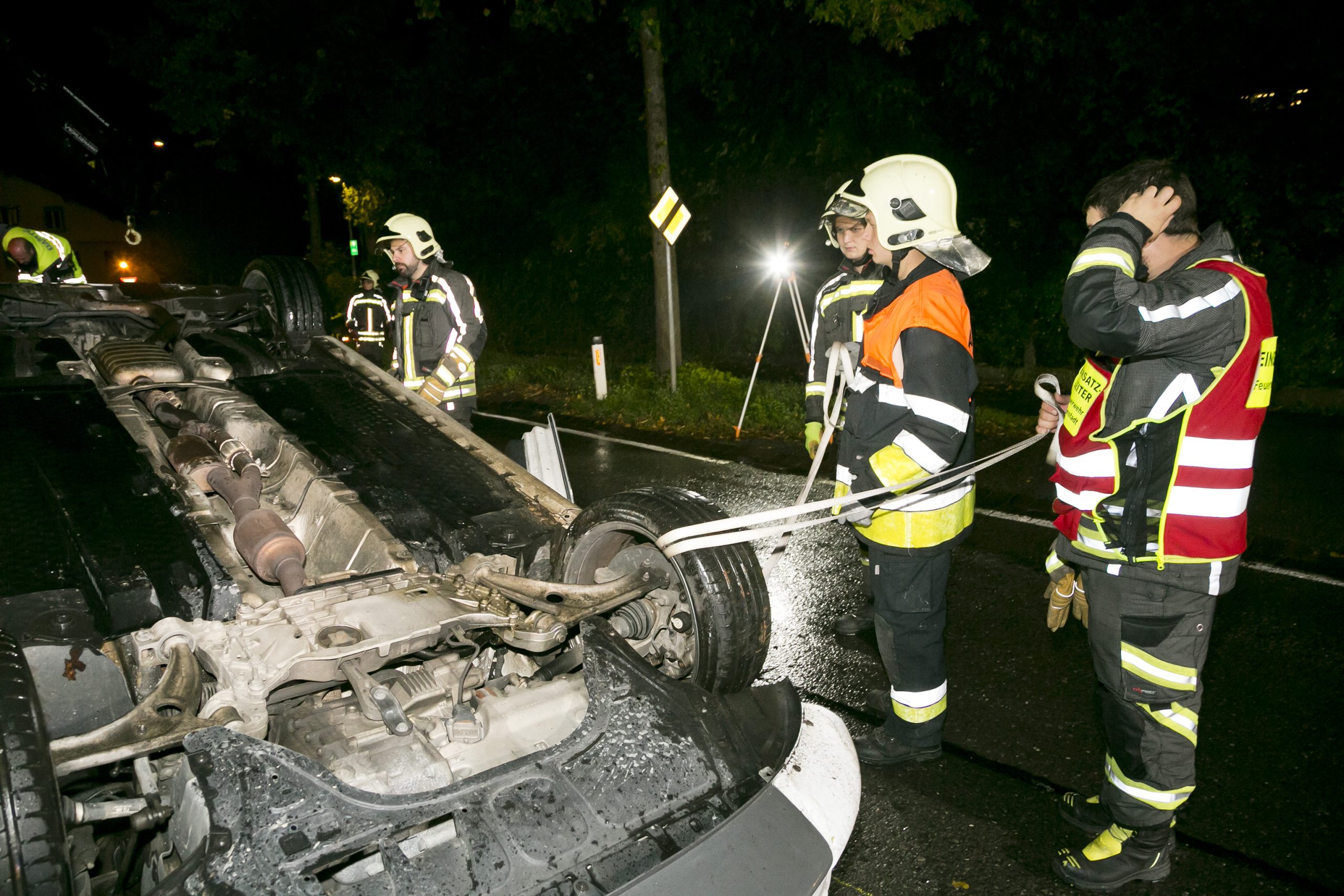 Ersten Erhebungen zufolge könnte die geringe Profiltiefe der hinteren Reifen eine Rolle gespielt haben. Das Auto geriet ins Schleudern, prallte gegen einen Baum am rechten Fahrbahnrand und überschlug sich in der Folge. Das Fahrzeug kam auf dem Dach zum Stillstand.