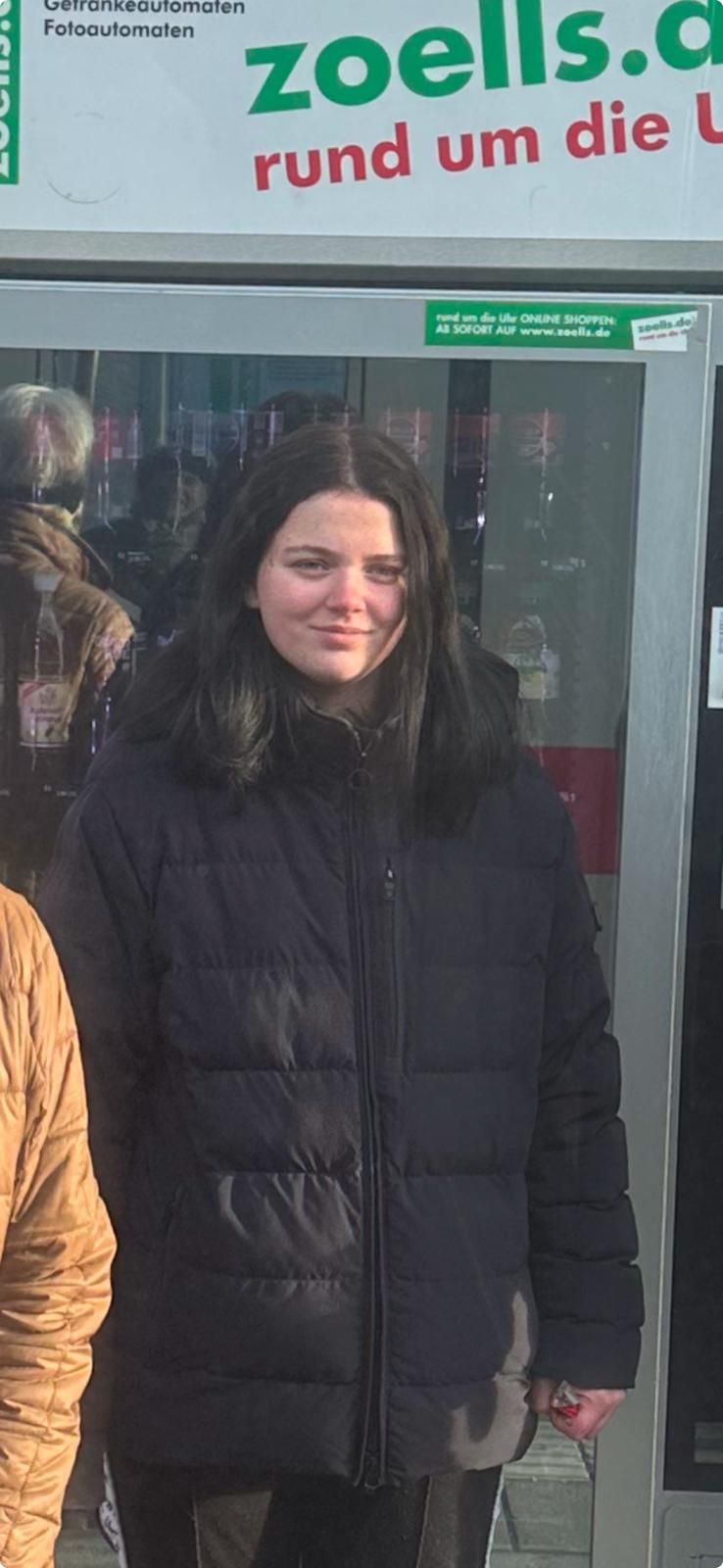 Die Jugendliche mit längeren schwarzen Haaren ist mit einer dunklen Jacke der Marke "Wellensteyn" und weißen Sneaker Schuhen unterwegs. Sie ist 1.71 m groß und hat eine normale/ schlanke Statur. Bei der Jacke auf den Fotos handelt es sich um die Jacke, die Agnes von Zuhause mitgenommen hat.