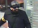 Mann, ca. 40 – 50 Jahre alt, ca. 165 cm – 175 cm groß, bekleidet mit schwarzem Kurzmantel, dunkle Hose, weiße Umhängetasche, Handschuhe, Blindenschleife am rechten Oberarm, maskiert mit schwarzer Schirmkappe, Sonnenbrillen, vermutlich aufgeklebter Vollbart sowie ebenfalls Nase mit Pflaster abgeklebt.