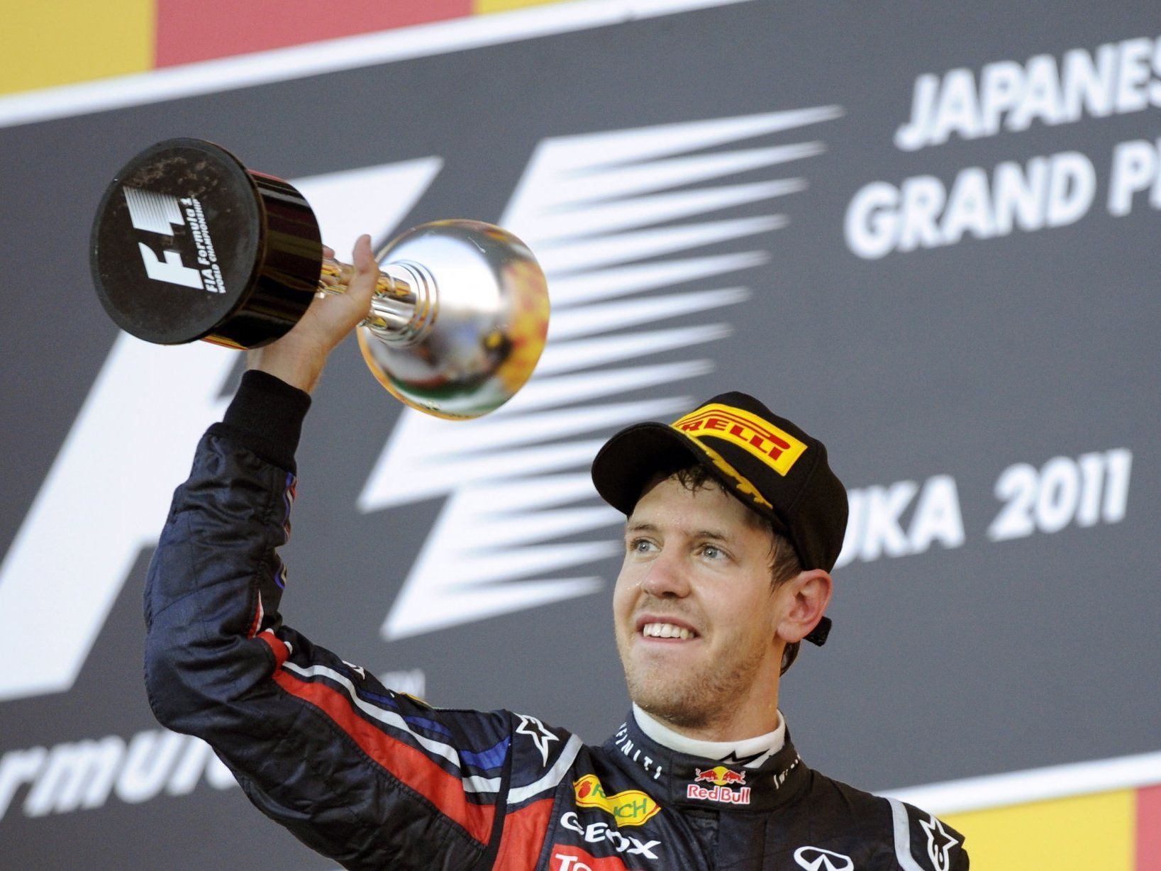 Der heißersehnte Japan-Sieg ist Sebastian Vettel zwar nicht gelungen, dennoch steht der 24-jährige Deutsche seit Sonntag als jüngster Doppelweltmeister der Formel-1-Geschichte fest. Der Red-Bull-Pilot musste sich in Suzuka trotz Pole Position hinter Jenson Button (McLaren) und Fernando Alonso (Ferrari) mit Platz drei zufriedengeben, ist vier Rennen vor Schluss aber endgültig nicht mehr einzuholen. In Japan hätte ihm selbst bei einem Button-Sieg schon Platz zehn genügt.”Ich danke jedem Einzelnen. Wir haben es wieder geschafft”, funkte ein den Tränen naher Vettel noch aus dem Auto an seine Boxen-Crew. Nicht einmal ein Jahr nach dem Finalthriller in Abu Dhabi, als Vettel im letzten Rennen die Fahrer-WM erstmals an sich gerissen hatte, wäre er liebend gerne mit seinem zehnten Saisonsieg zum erneuten Titelgewinn gerast. So fuhr der WM-Führende im 15. Saisonrennen zumindest zum 14. Mal auf das Podest. Mit nun 324 Zählern und 114 Punkten Vorsprung auf Button steht Vettel damit als neuerlicher Weltmeister fest.