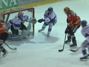 Riesen Diskussion beim 3:2 - Martin Mairitsch versenkt den Puck samt Goalie im Tor