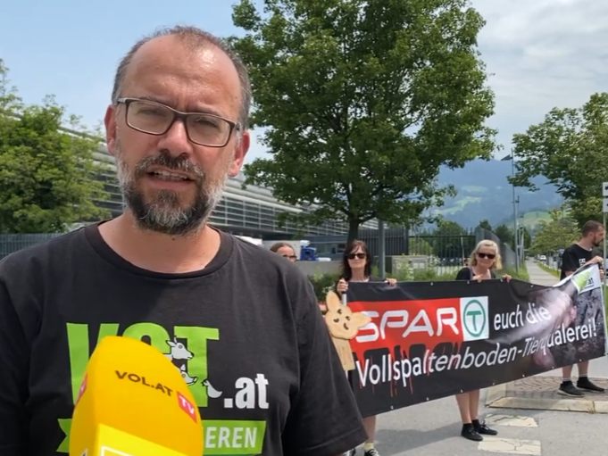 Ein Archivbild zeigt Richter bei einer Vollspalten-Aktion vor der Spar-Zentrale in Dornbirn im Jahr 2022. ©VOL.AT/Mayer