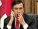 Wahrscheinlich entstanden die Bilder vor einer offiziellen Fernsehansprache Saakaschwilis, als er nicht wusste, dass die Kamera bereits lief. Der Präsident sitzt vor den Flaggen Georgiens und der EU. In der rechten Hand hält er einen Telefonhörer, in der linken seine rote Krawatte, auf der er nervös herumkaut.
